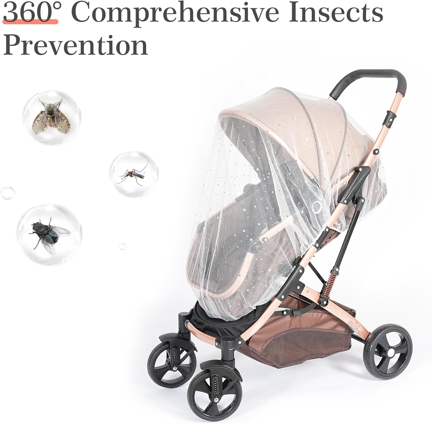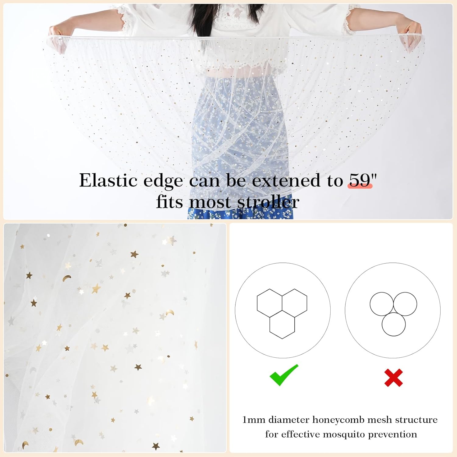 Baby Mosquito Net for Stroller, Perfect Bug Net for Stroller/Bassinets/Cradles/Playards/Pack N Plays and Portable Mini Crib, Durable Baby Insect Netting, White Star