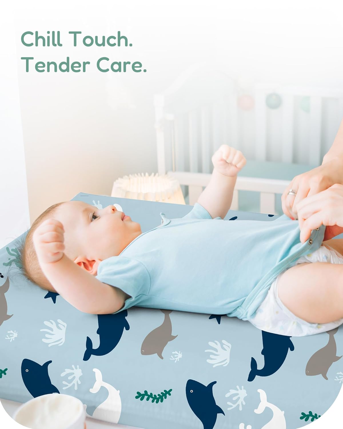 - 2-Color Design: This TotChill changing pad cover set features two adorable colors, perfect for both boys and girls. Designed to fit standard changing pads (32” x 16” x 5”), it adds a cute touch to your baby’s space.