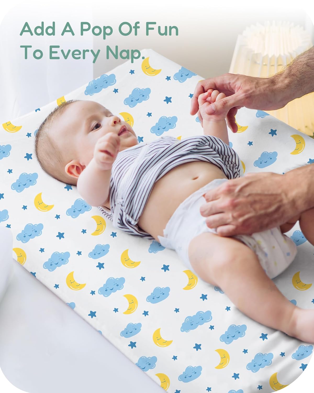 - Premium Softness & Comfort: Made from high-quality polyester, this changing table cover is ultra-soft, breathable, and temperature-regulating. It keeps your baby cozy year-round. The fabric’s gentle stretch ensures a snug fit, offering comfort all day long.