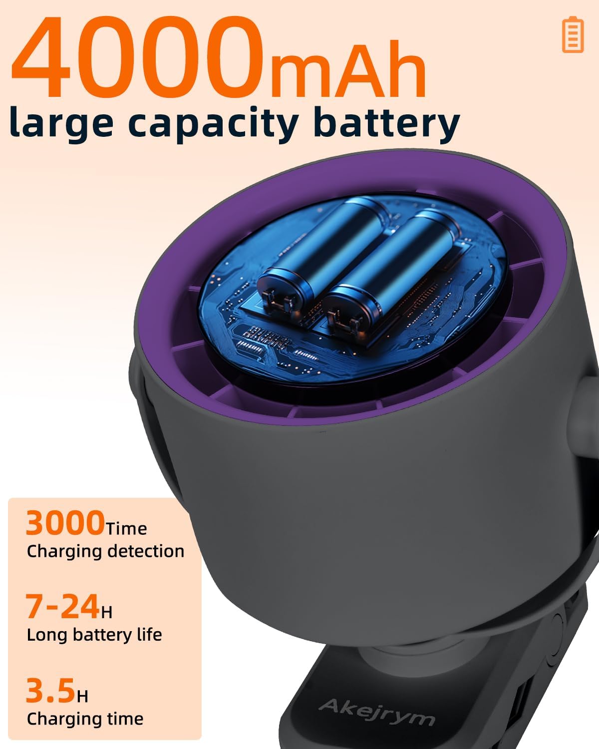 - 【Ultra-long Battery Life】Akejrym portable stroller fan is equipped with a 4000mAh large-capacity battery that lasts 7-24 hours in the wind (depending on speed) and offers a 1M USB charging cable for easy charging anytime, anywhere, regardless of distance. It can be charged by computer, mobile power supply, car charger, etc.