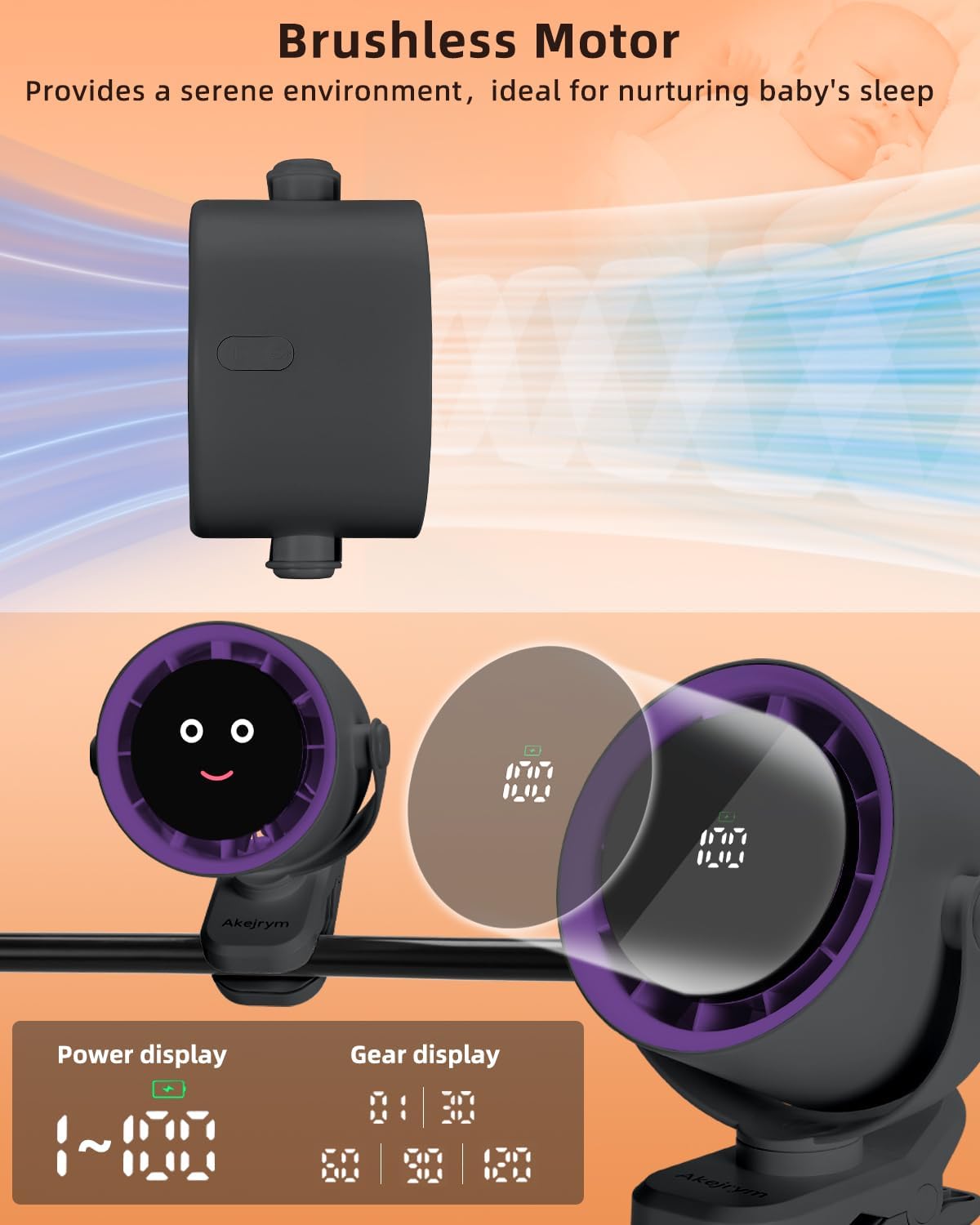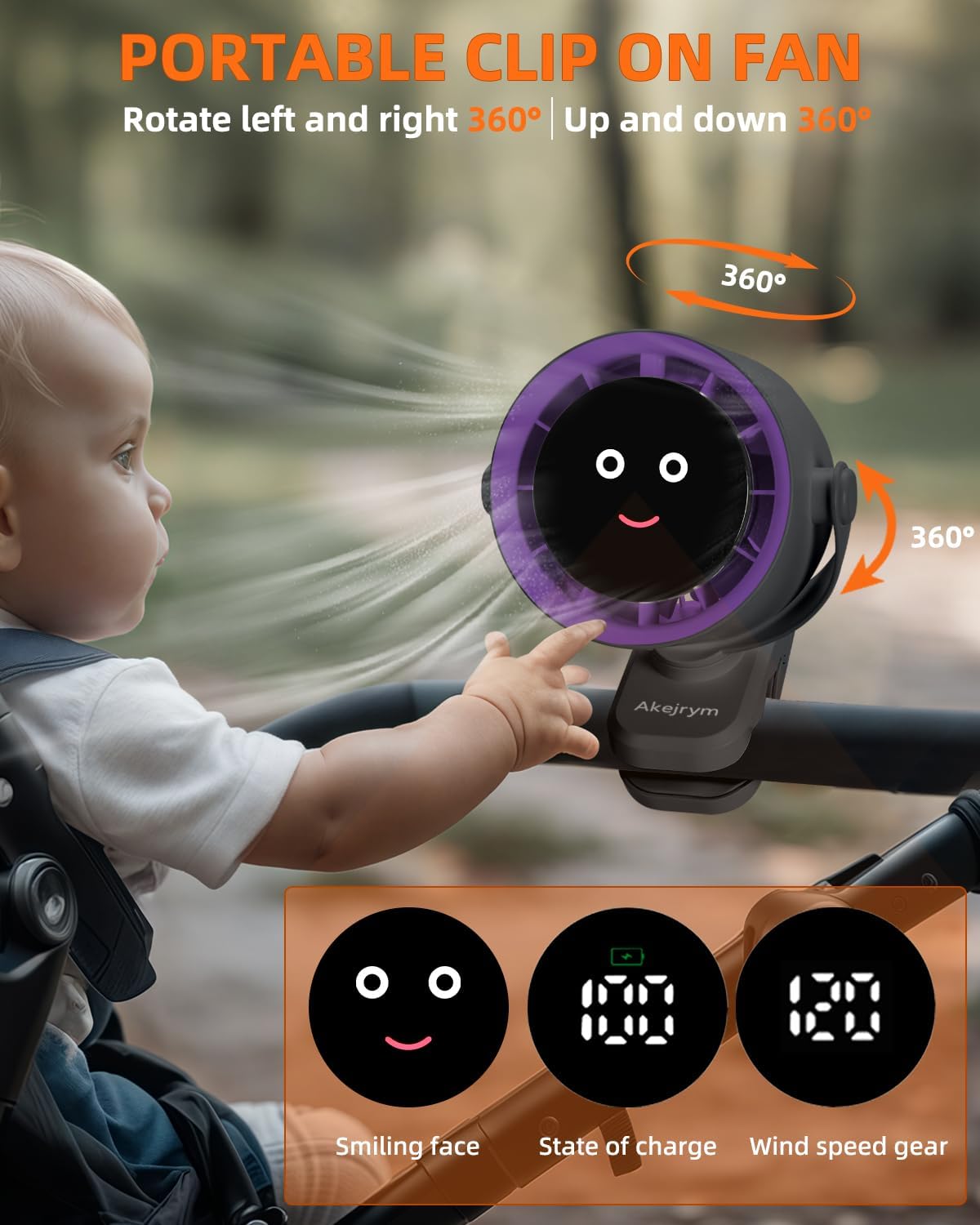 - 【360° Rotation and 5 Speeds】Akejrym Baby Stroller fan head can be adjusted vertically and horizontally in any direction, providing cool airflow from all directions to keep your baby comfortable in hot weather;It has 5 different speeds for different purposes, which is more comfortable for babies.