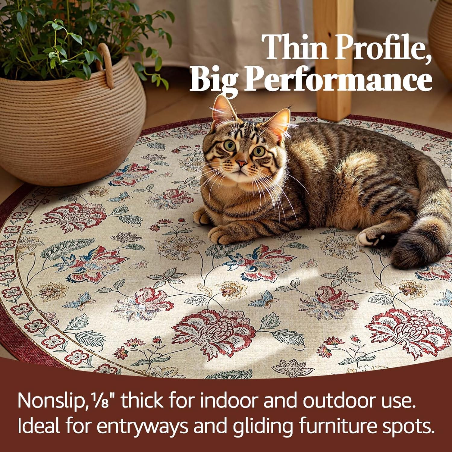- Slim, Secure & Floor-Friendly: At just 1/8″ thick, this lightweight rug slips easily under doors and furniture while its built-in non-slip backing keeps it firmly in place. Perfect for high-traffic areas, it offers style and stability without bulk.