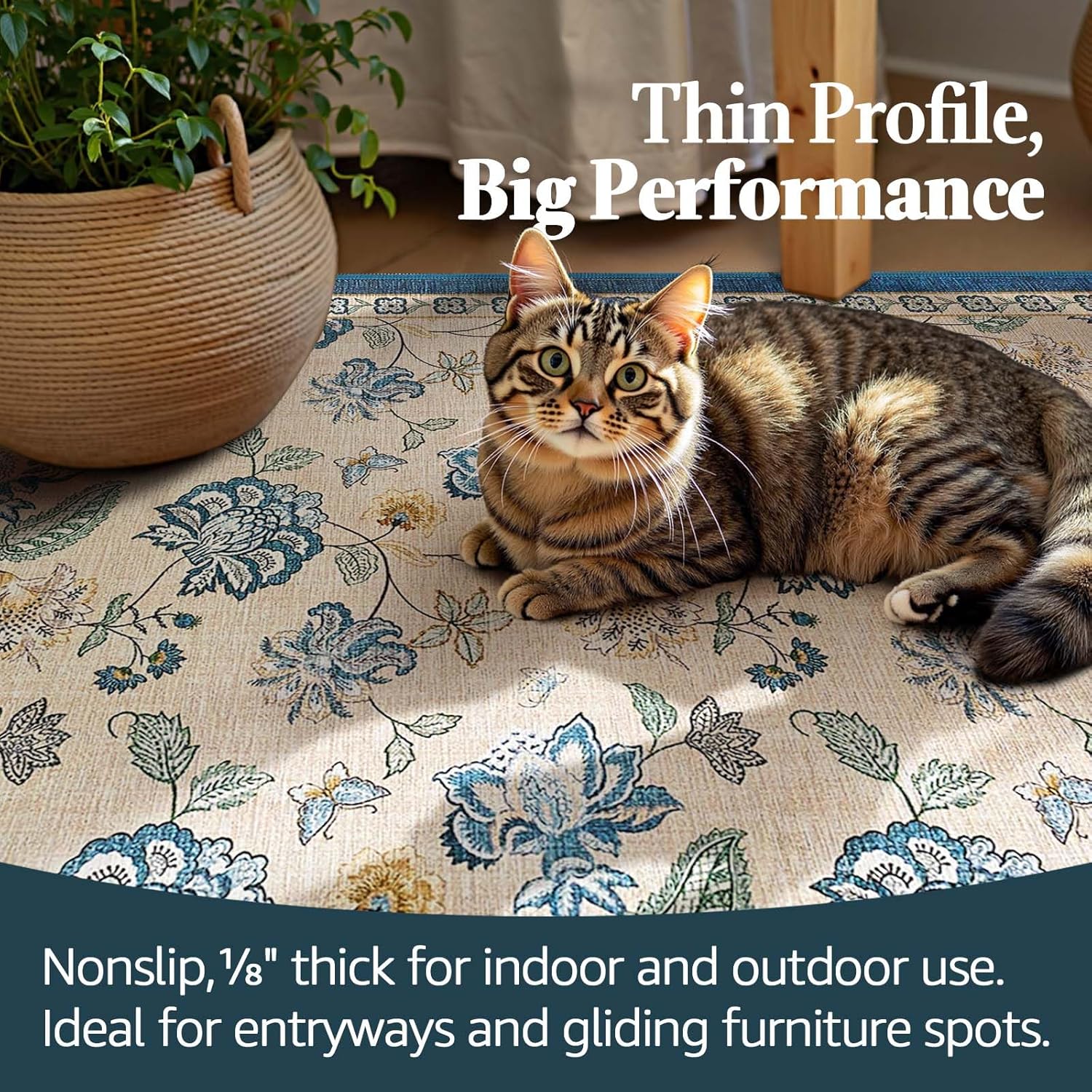 - Slim, Secure & Floor-Friendly: At just 1/8″ thick, this lightweight rug slips easily under doors and furniture while its built-in non-slip backing keeps it firmly in place. Perfect for high-traffic areas, it offers style and stability without bulk.