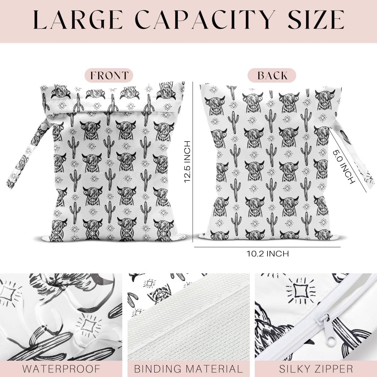 Waterproof Wet Bag for Swimsuit, Travel Beach Wet Dry Bag, Hidden Zipper Reusable Western Cowgirl Wet Bags, for Travel Beach Wet Swimsuits Toiletries Diapers Laundry Bag