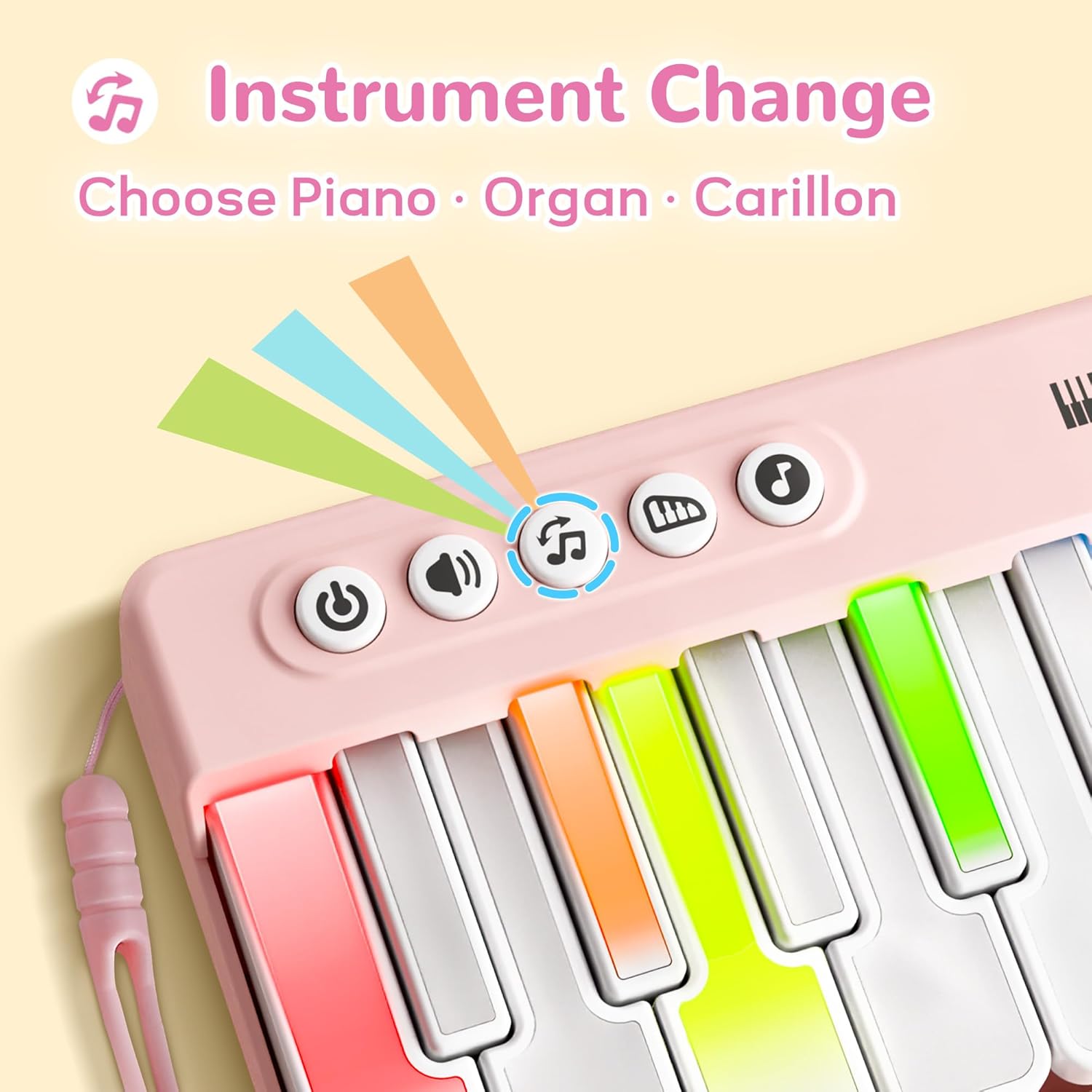 iPlay, iLearn Kids Mini Piano Toy W/Rainbow Lights, Portable Travel Piano Keyboard Toddlers Musical Instrument Learning Toys, Music Interactive Birthday Gift for 2 3 4 5 6 Year Old Girls Children