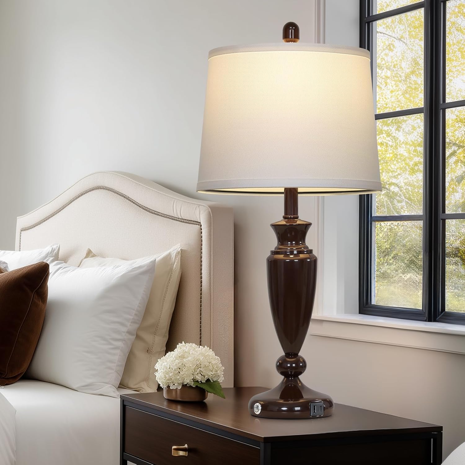 - 【3-Way Dimmable Touch Lamps】Our brown lamps for night stand are designed with three level brightness to meet your different needs for lighting. Just lightly tap on the built-in sensitive touch sensors to make quickly change brightness level, and response sensitively without delay, saving you from the trouble of fumbling with the switch in the dark. Low-grade is a perfect nightlight for sleeping or nursing, mid-grade is ideal for daily use, and high-grade is excellent for reading, studying and working.