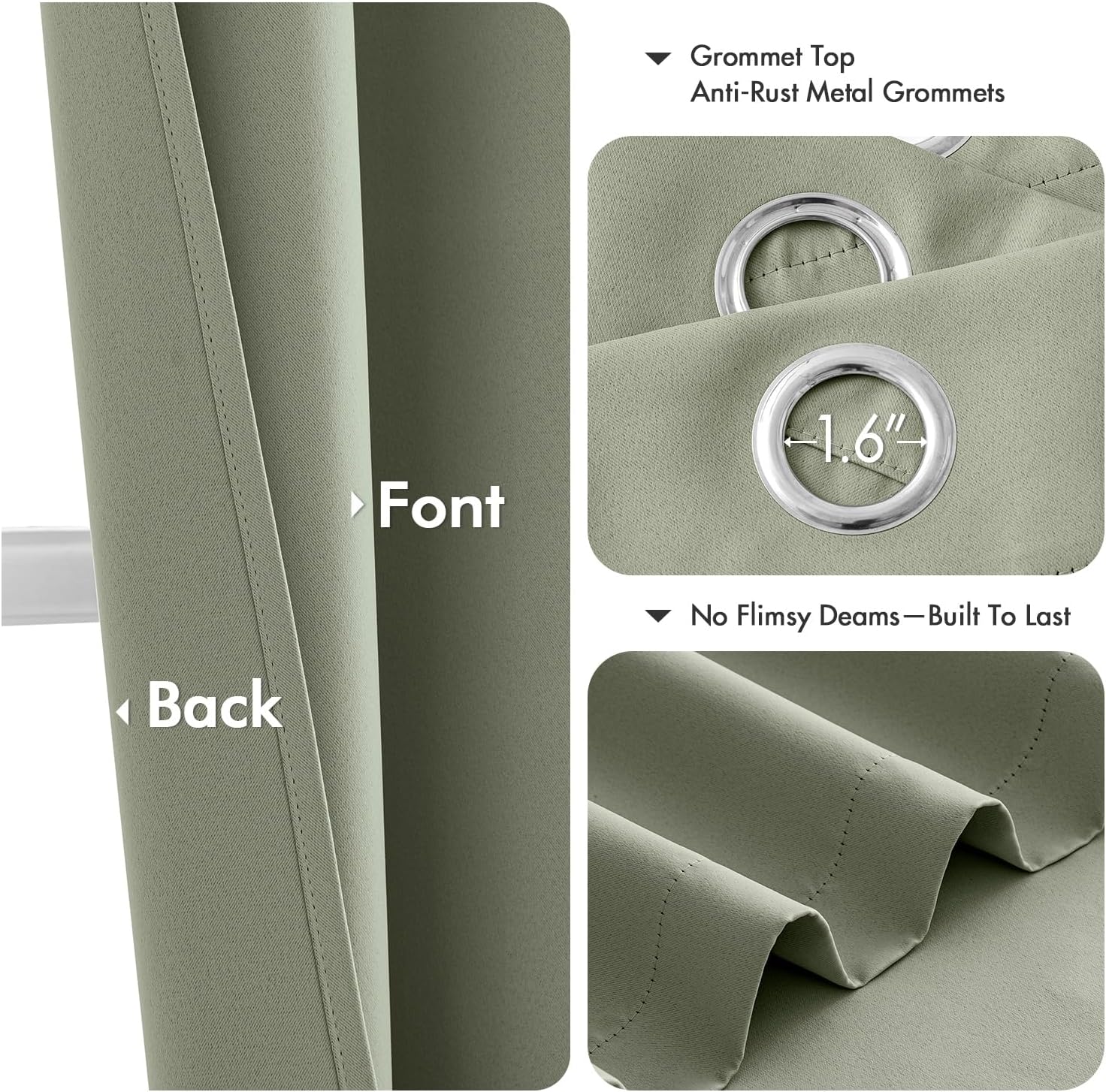 - High-Quality Material: Crafted from high-quality 225GSM polyester fabric, these curtains offer enhanced durability and elegant drape. The soft blackout material features triple-layer weaving technology, with a middle layer of black yarn for superior light blocking and privacy. Both sides feature the same refined color, ensuring a seamless look that elevates your home’s aesthetic with understated sophistication
