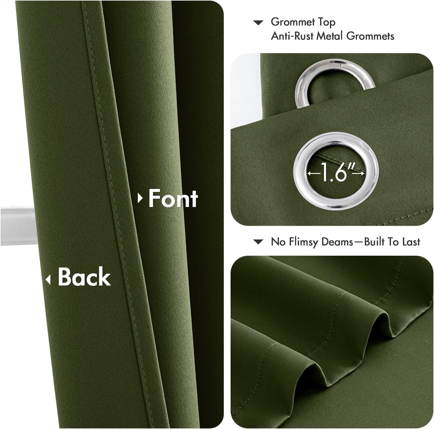 MIULEE Olive Green Blackout Curtains for Bedroom Living Room 84 Inches Long 2 Panels, Thermal Insulated Room Darkening Drapes Solid Grommet Top Noise Reducing Dark Green Window Treatments 40x84 Inch