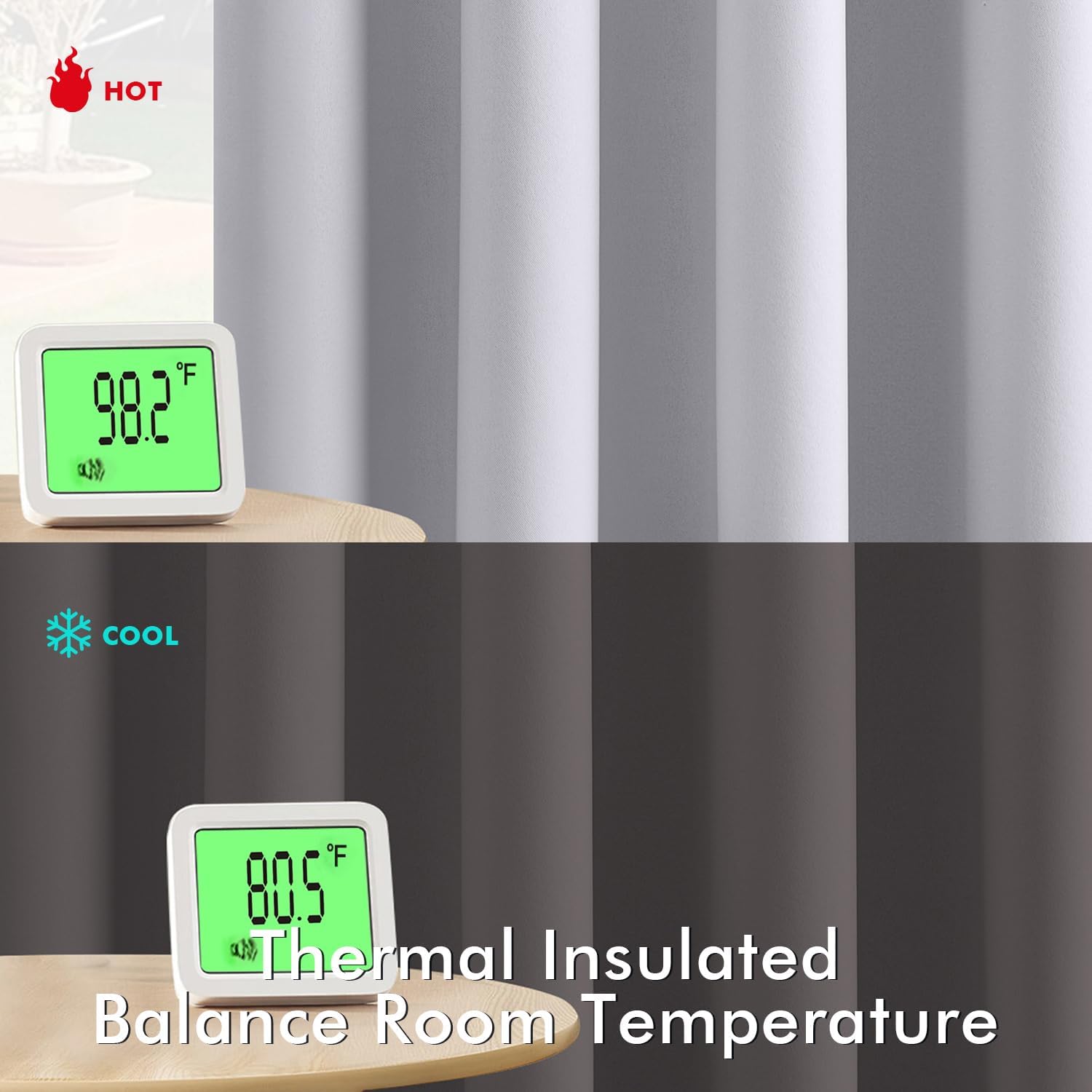- High-Quality Material: Crafted from high-quality 225GSM polyester fabric, these curtains offer enhanced durability and elegant drape. The soft blackout material features triple-layer weaving technology, with a middle layer of black yarn for superior light blocking and privacy. Both sides feature the same refined color, ensuring a seamless look that elevates your home’s aesthetic with understated sophistication