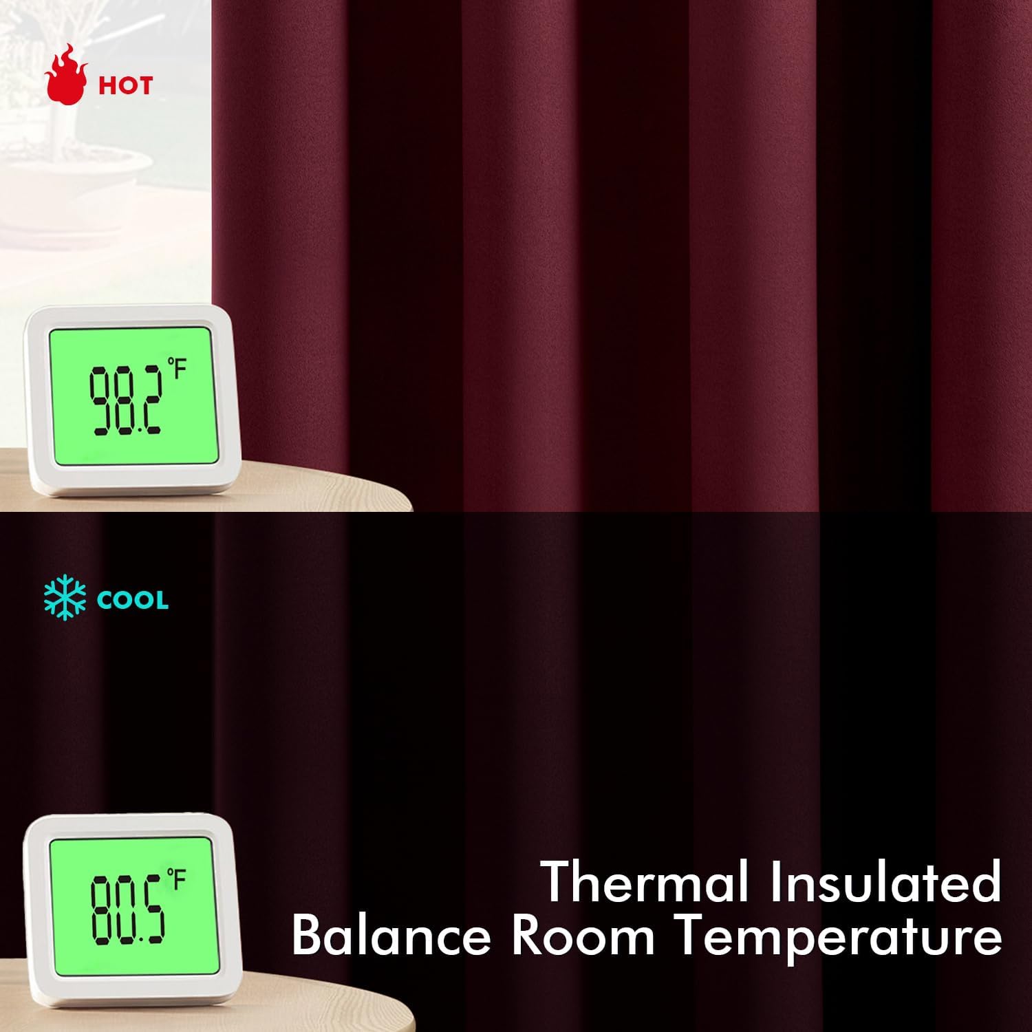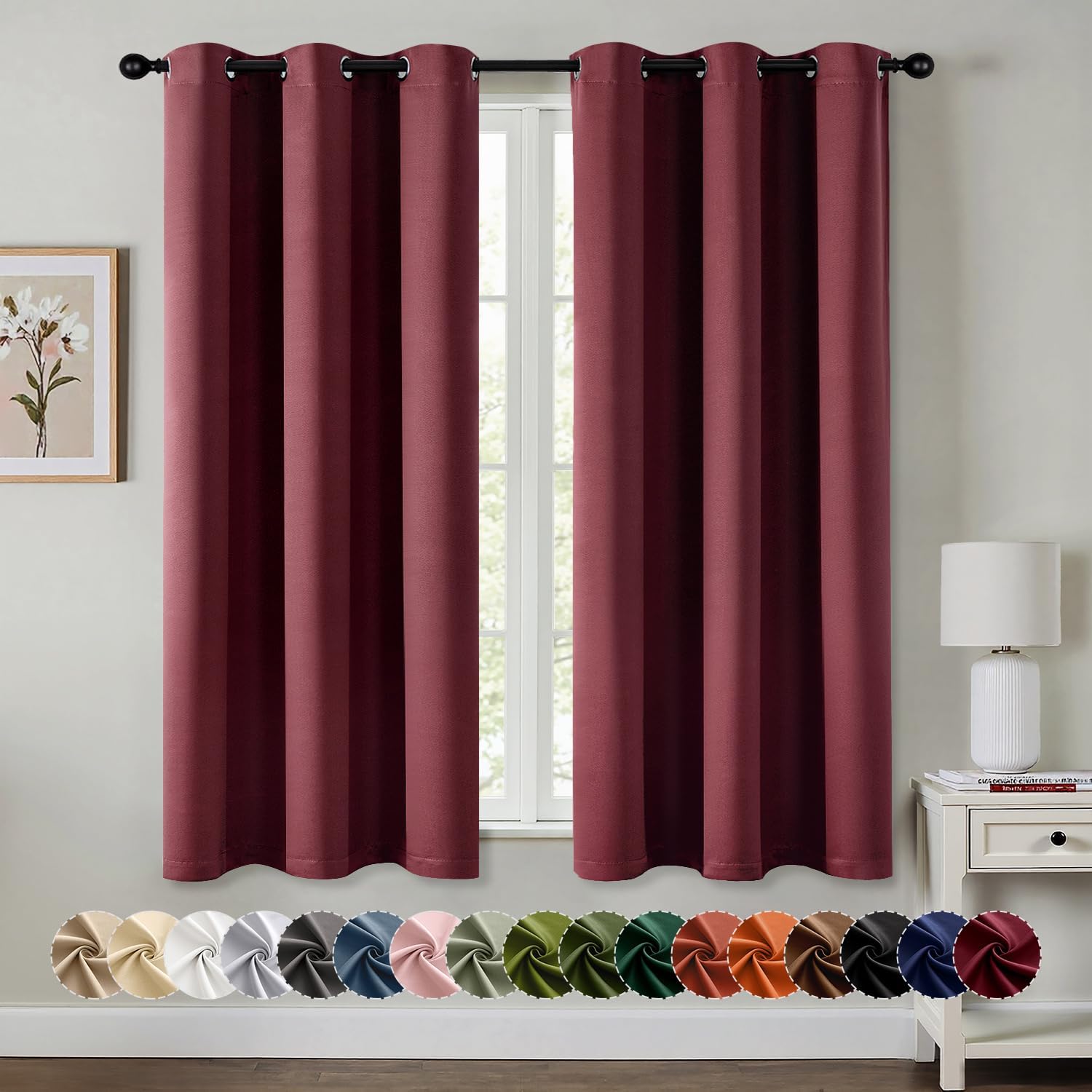 MIULEE Burgundy Red Blackout Curtains - Thermal Insulated Bedroom Curtains Room Darkening Drapes for Living Room Kitchen Christmas Grommet Top Window Treatment, 40 x 54 Inches Long, 2 Panels