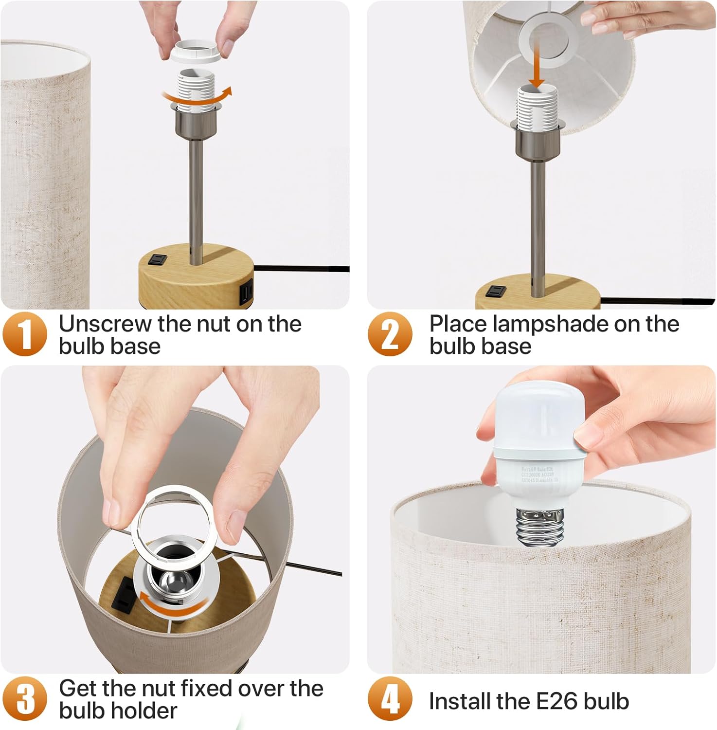 - ❤️【$7 E26 Warm Light Bulb Included】―To save you from troubles in finding right bulb to match, we particularly pair with an energy-saving E26 light bulb worthy of $7. Unlike other dazzling night stand light lamp, our bedside lamp with usb port provides no-flickering lights, protecting you and your family's eyes from eye strain, or eyesight damages.