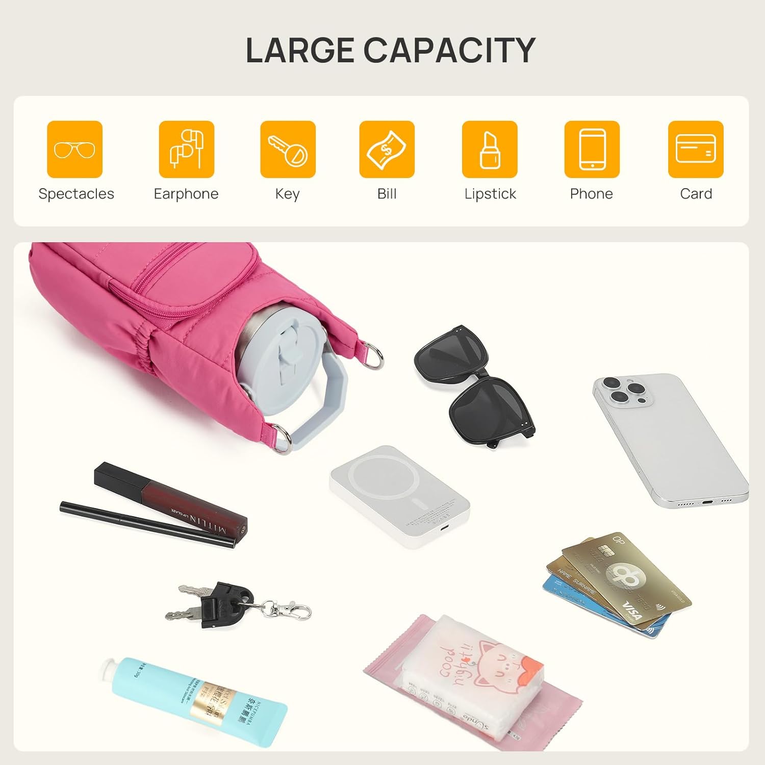 - Telena Water Bottle Bag: Made of high quality down fabric with adjustable vintage shoulder straps makes this water bottle holder classic yet stylish. The soft and waterproof down filled cotton material has better water and shock resistance while maintaining high softness and elasticity. Not only to prevent the water cup bump, but also wear light. Please note that this crossbody bag cannot be washed or machine washed