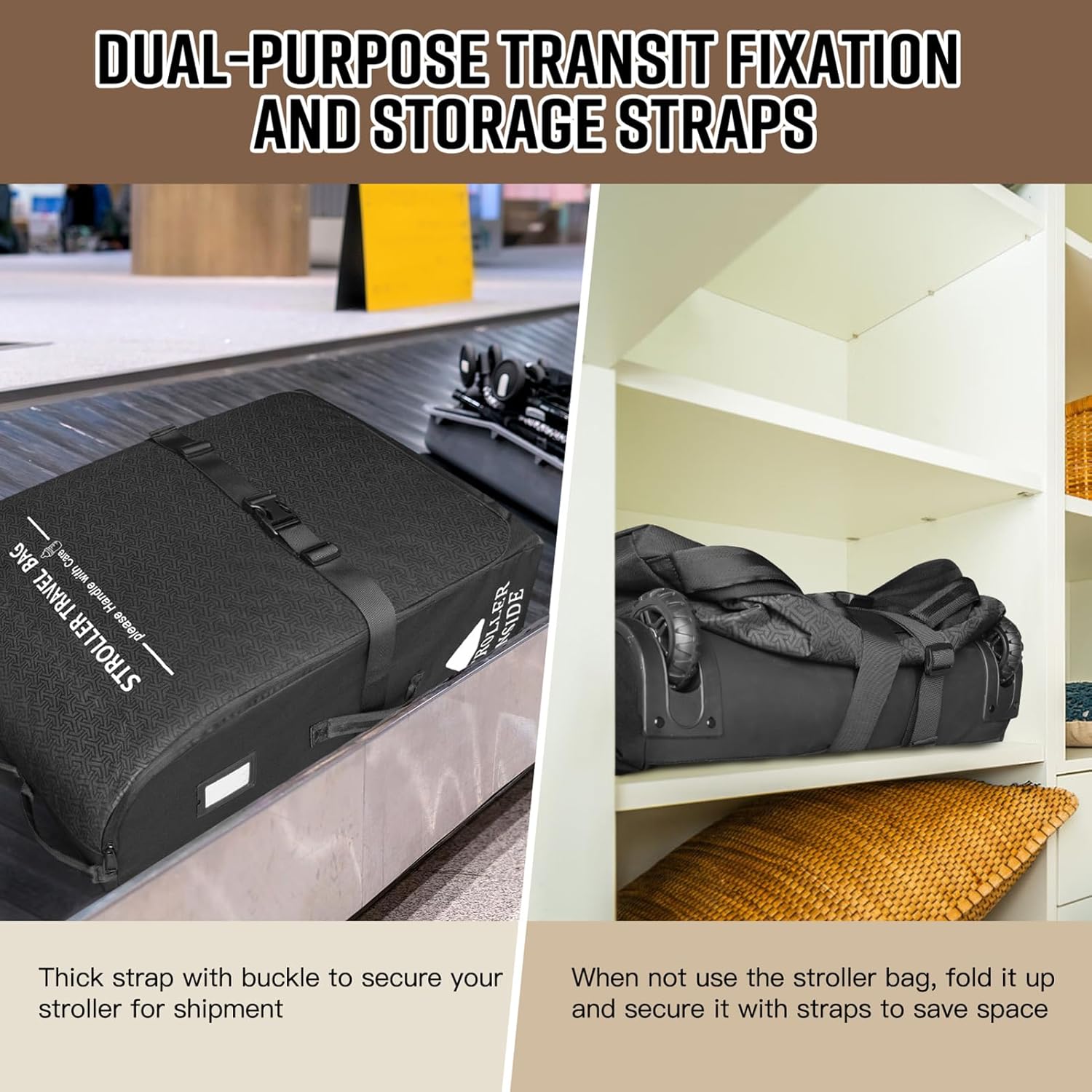 - ULTIMATE PROCTECTION: Designed with 3 layers of premium luggage grade materials,our baby stroller travel bag ensures all-around protection against bumps, scratches, and even light rain. The interior fixing strap ensure your stroller doesn't wobble inside, and an adjustable luggage packing strap(2โ wide) to secure the entire travel bag in pristine condition.