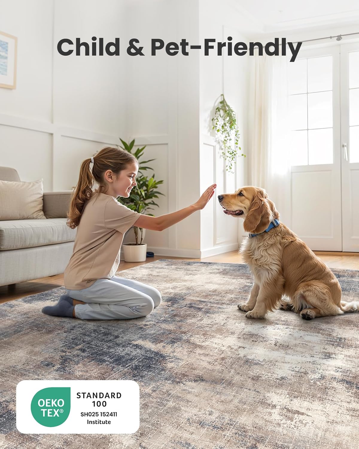 - 【OEKO-TEX Certified Quality】This washable area rug 6x9 is crafted from OEKO-TEX certified, skin-friendly materials, making it an ideal surface for children & pets. The soft feel provides a cozy barefoot experience all day long.