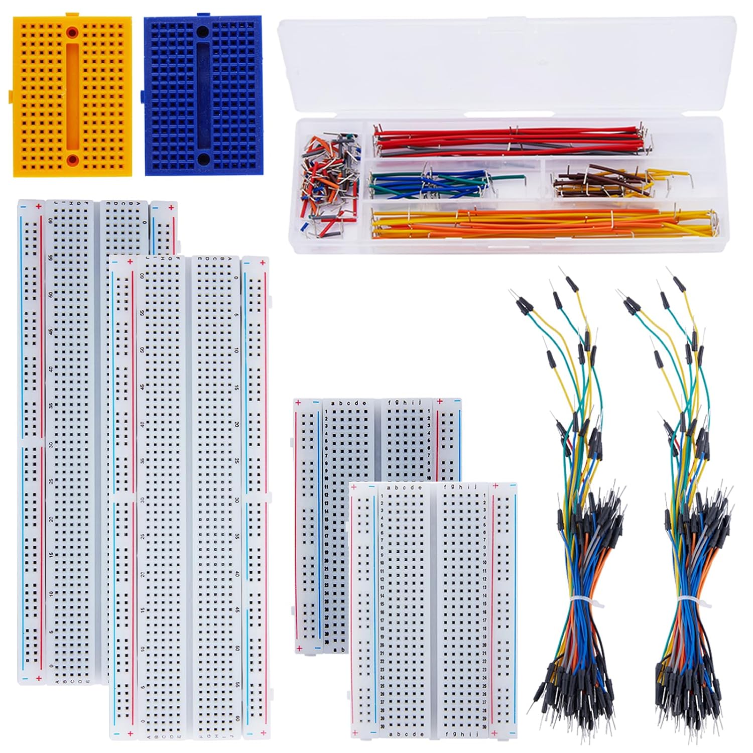 - Scalable Breadboard System: Includes 2x830-TP (full-size), 2x400-TP (medium), and 2x170-TP (mini) boards. Mini boards in yellow/blue for intuitive multi-circuit prototyping.