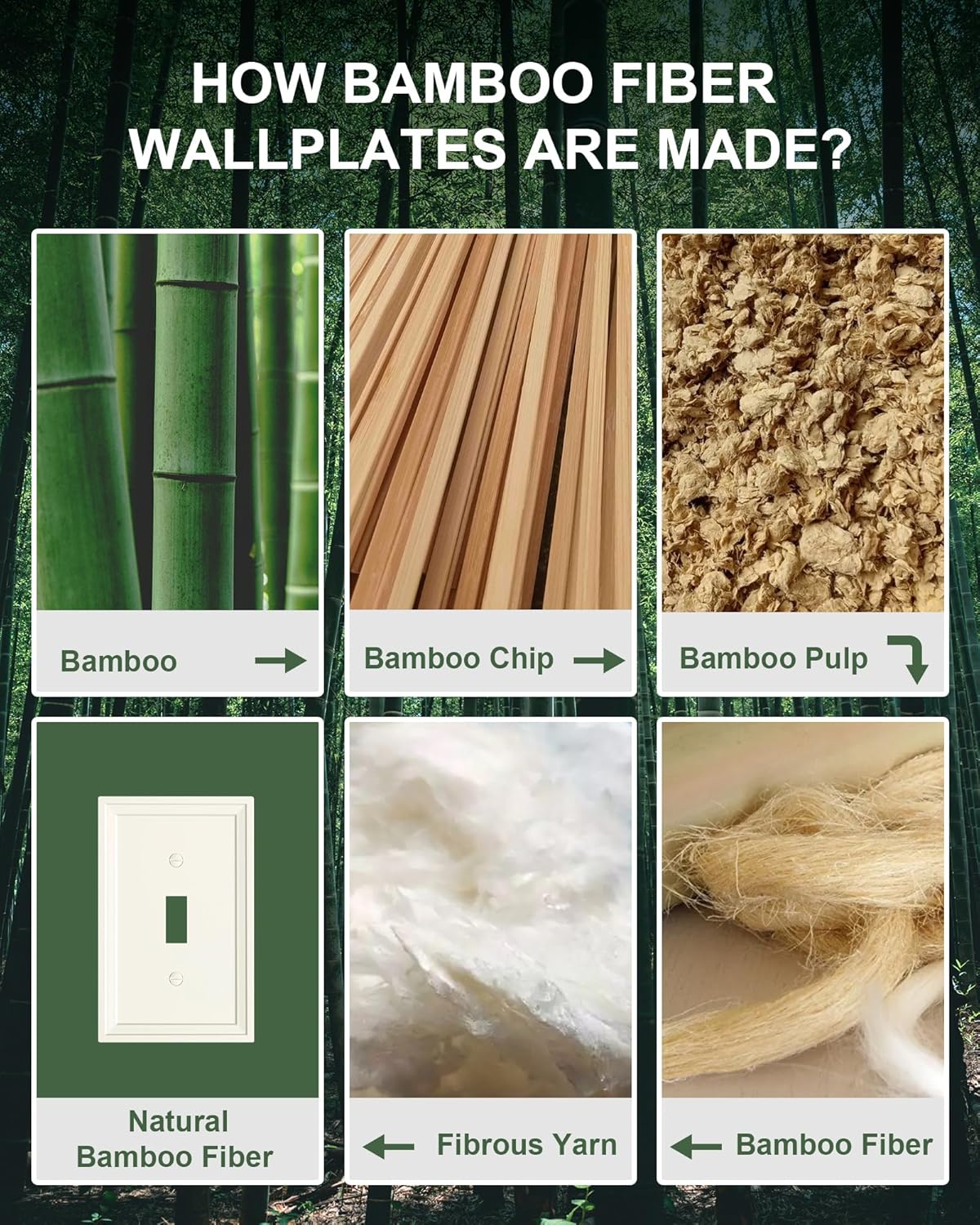 6-Pack Single Toggle Light Switch Covers Wall Plate, Light Almond Decorative Switch Plate Covers, 1 Gang Natural Bamboo Fiber Wall Plate, Corrosion Resistant