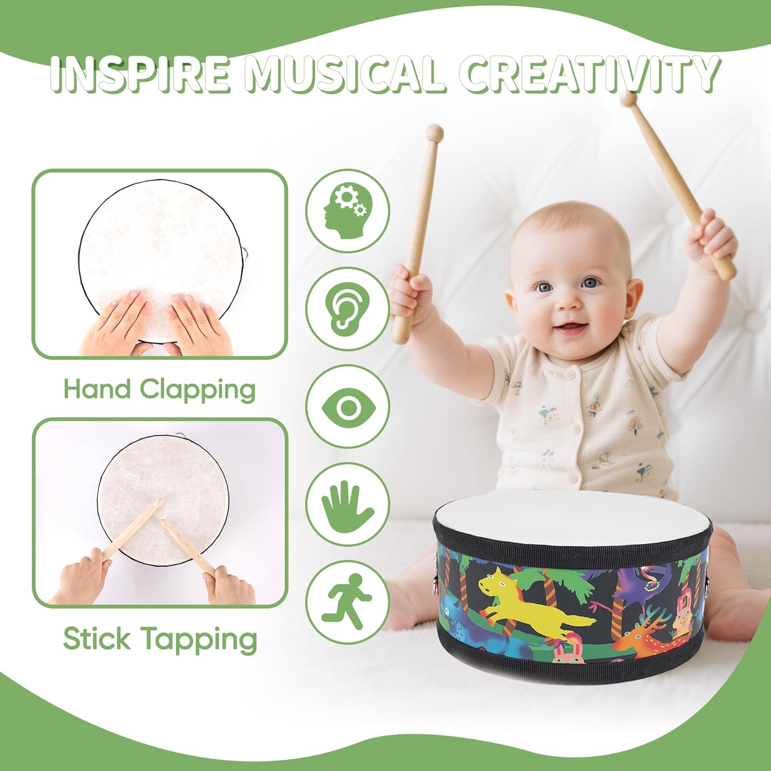 - Adjustable Strap for On-the-Go Play: This toddler drum set features a fully adjustable shoulder strap, little drummers can enjoy music and rhythm practice anytime, anywhere; Perfect for those searching for a kids drum kit, toy drum set, or musical instruments for kids
