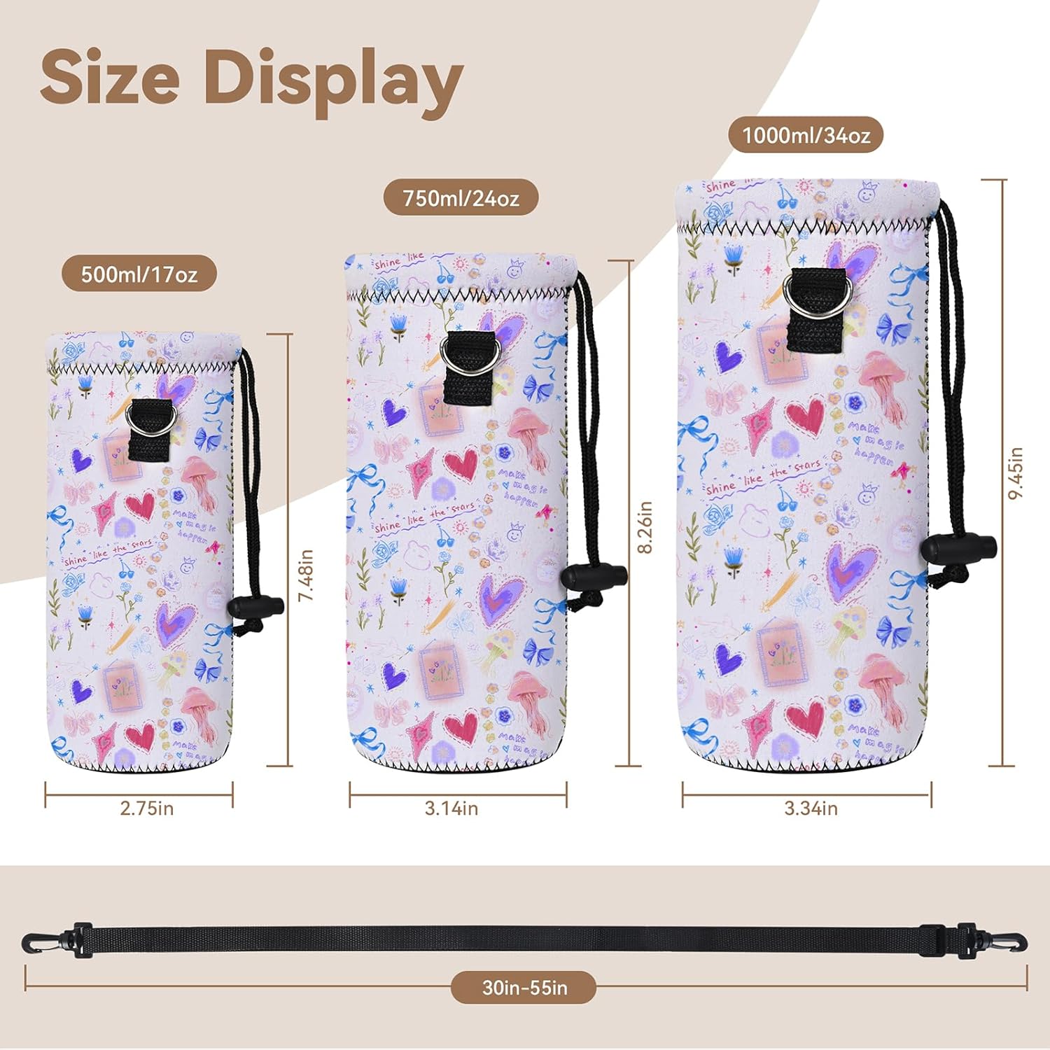 - AVAILABLE IN TWO SIZES:Our AUPET water bottle Holders has two sizes for you to choose,750ML:length: 8.26 inches,Diameter: 3.14 inches;1000ML: length: 9.45 inches,Diameter: 3.35 inches,the neoprene stretches to fit most bottles