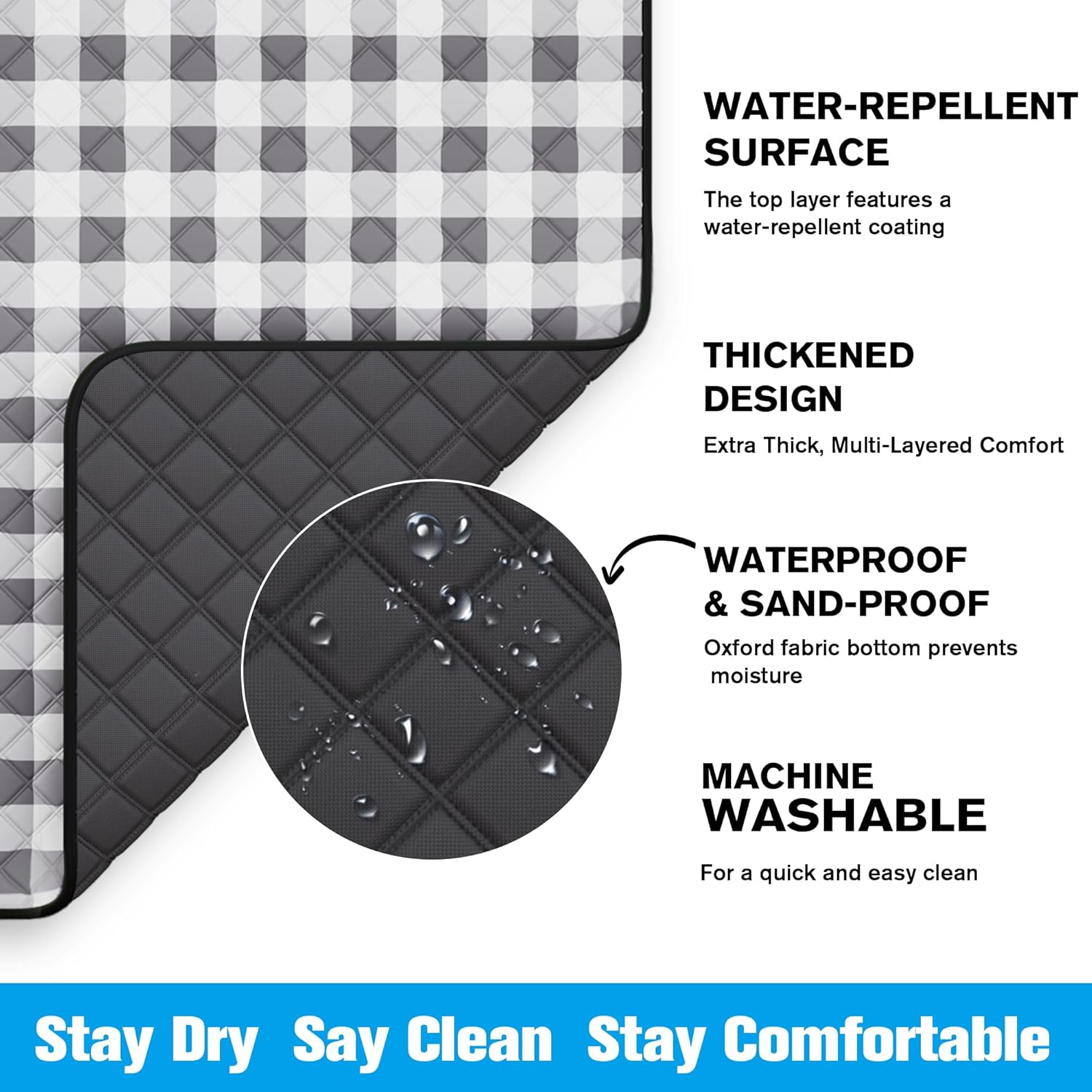 - Water & Dirt Resistant: Our camping blanket is made for outdoor conditions. The top layer is water-repellent and stain-resistant. Just shake off drinks, dirt, or sand after use. The waterproof base blocks moisture and insulates against heat or cold from the ground, keeping you dry and comfortable at the park, beach, campsite, or backyard.
