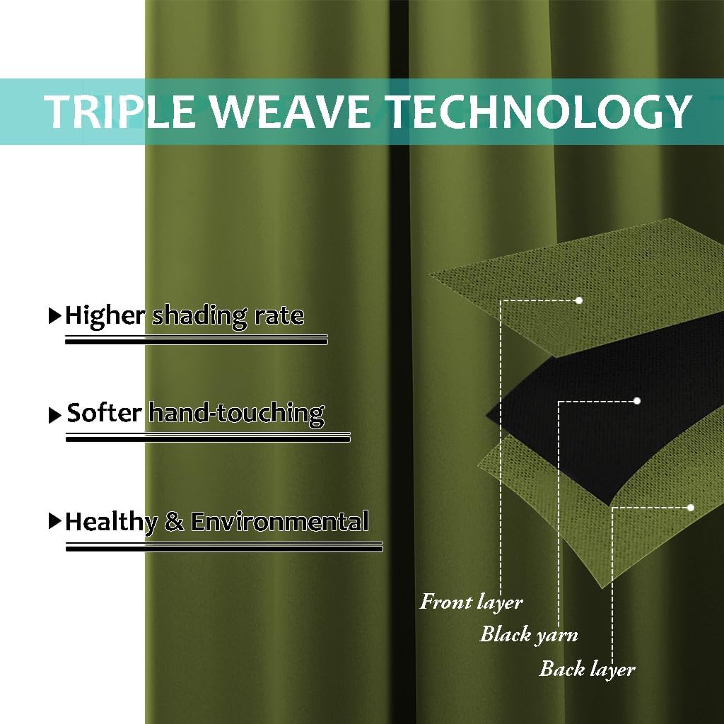 - Unique Design: Draperies constructed with 2 layers are all triple weave blackout fabric, balancing room temperature by insulating against summer heat and winter chill meanwhile protect privacy. No chemical coating, no formaldehyde, bring harmony to your family.