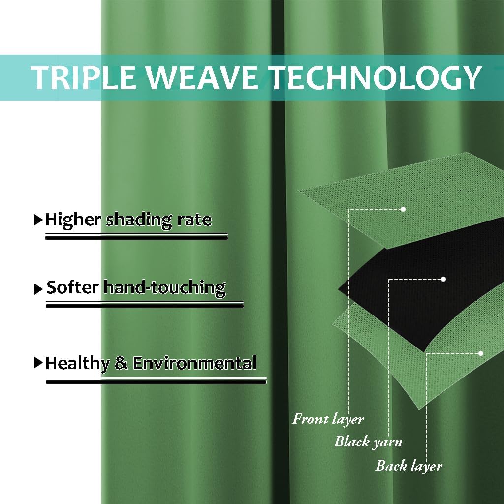 - Unique Design: Draperies constructed with 2 layers are all triple weave blackout fabric, balancing room temperature by insulating against summer heat and winter chill meanwhile protect privacy. No chemical coating, no formaldehyde, bring harmony to your family.