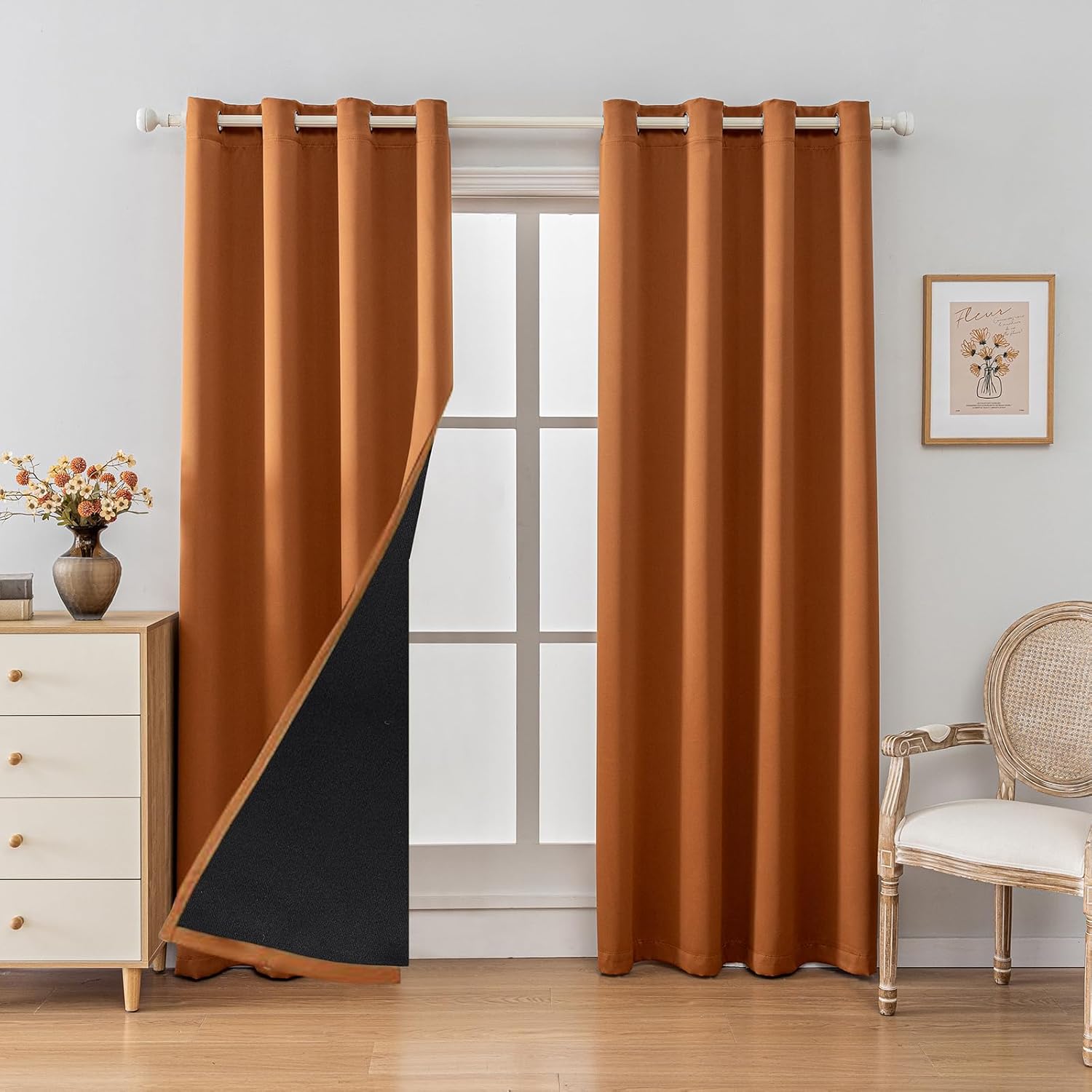 Anytime 100% Blackout Curtain Set, Thermal Insulated & Energy Efficiency Window Draperies for Guest Room, Full Shading Panels for Shift Worker and Light Sleepers(Orange, 2 Panels, 52W x 84L)