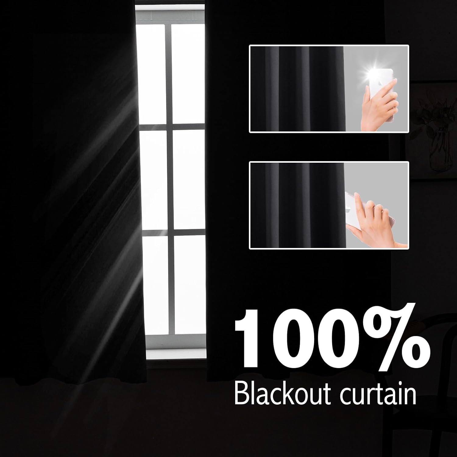 - Blackout Effect: Pure physical high-density fabric makes the curtains more blackout, completely blocking 100% of sunlight and UV rays. Provides a truly dark environment for restful sleep day or night. Note: Some natural light may show around the edges depending on window installation.