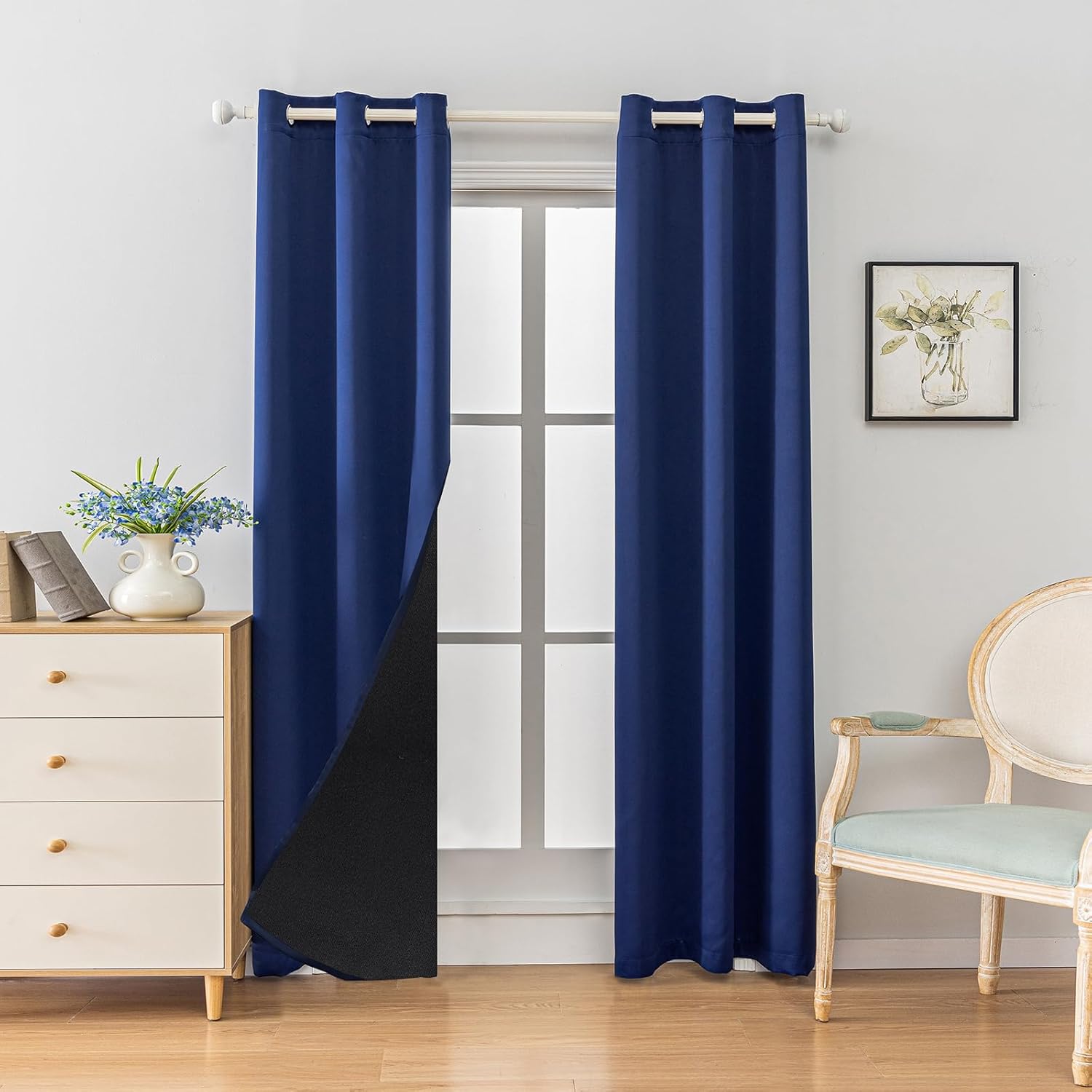 Anytime 100% Blackout Curtain Set, Thermal Insulated & Energy Efficiency Window Draperies for Guest Room, Full Shading Panels for Shift Worker and Light Sleepers(Navy Blue, 2 Panels, 42W x 72L)