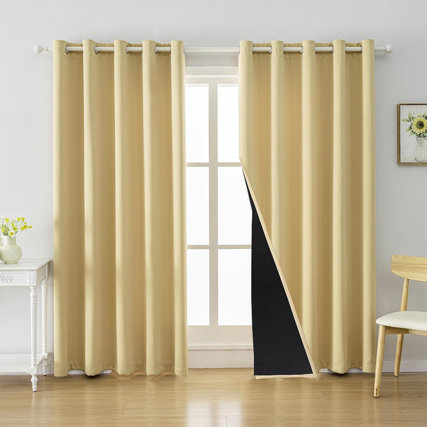 Anytime 100% Blackout Curtain Set, Thermal Insulated & Energy Efficiency Window Draperies for Guest Room, Full Shading Panels for Shift Worker and Light Sleepers(Beige, 2 Panels, 70W x 72L)