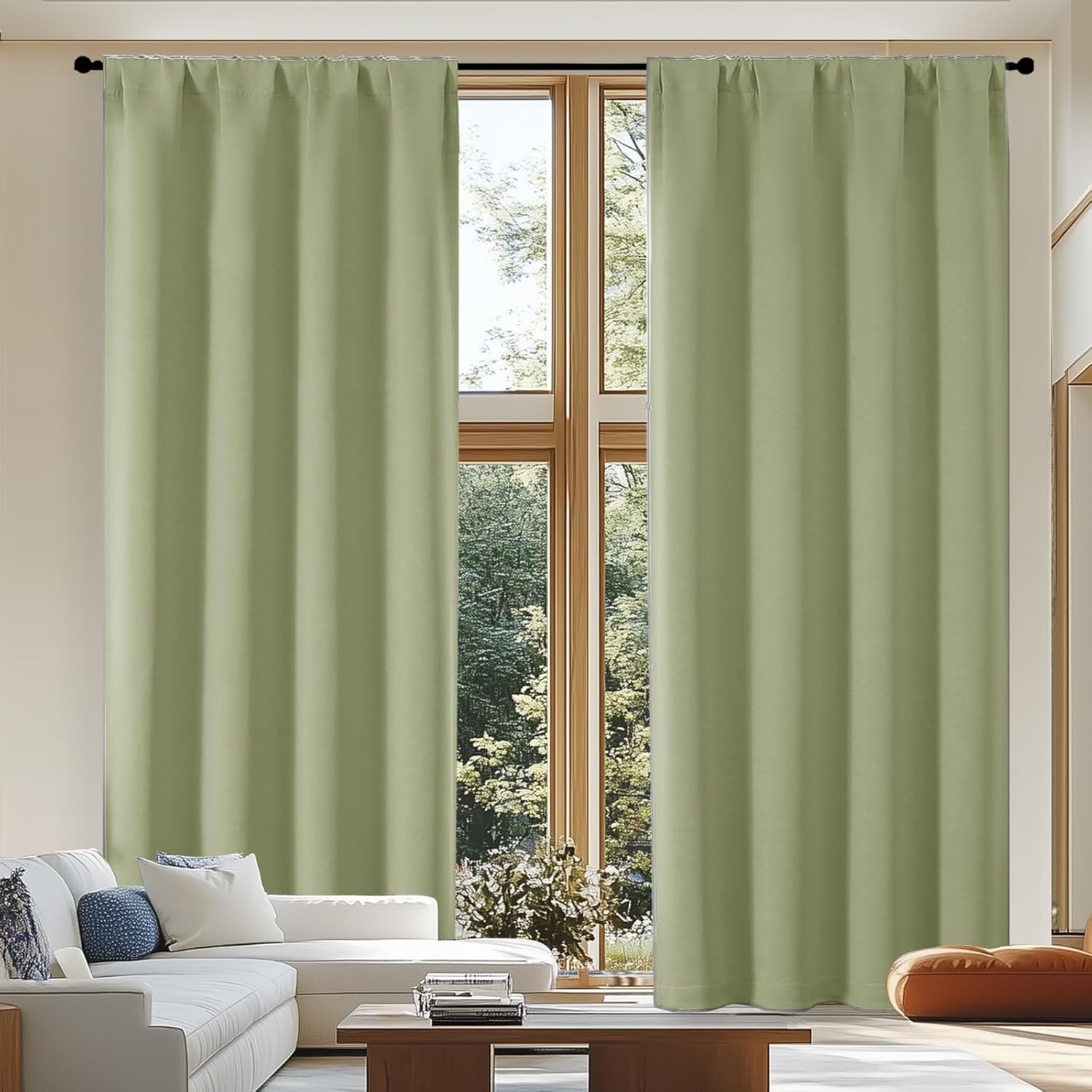Simplebrand Ava Sage Green Blackout Curtains for Patio 108 Inches Long 2 Panels Set, Solid Thermal Insulated Room Darkening Rod Pocket Window Treatment Curtains Blackout Drapes, W50 x L108 Inch
