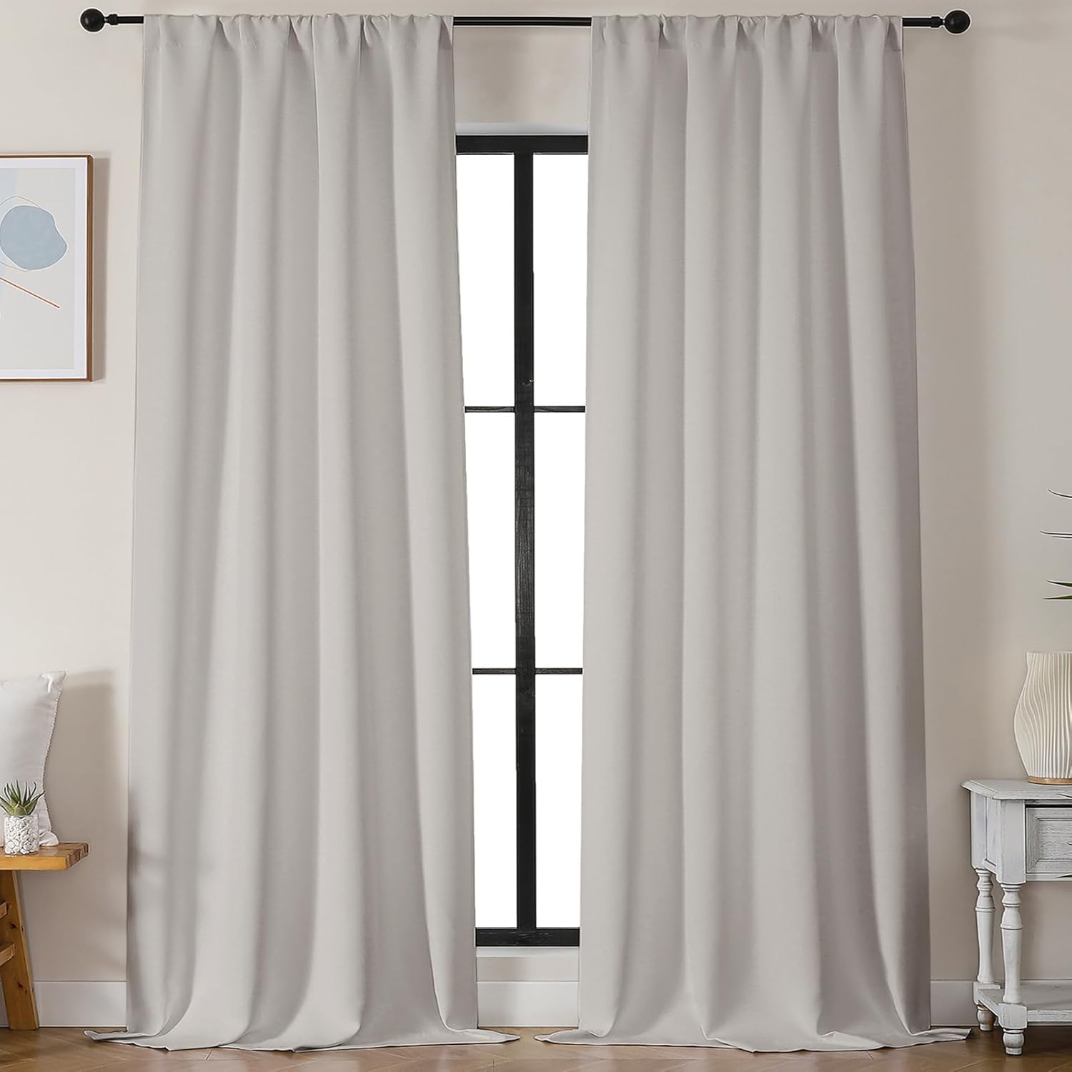 - Light Blocking: Our blackout curtains block 98% to 85% of light and UV, with darker colors up to 98% and medium shades at 85%. Even white curtains reduce light by 60%. Perfect for any room or lighting preference. Choose based on your room's direction and personal style. Ideal for bedroom privacy or living room ambiance. Our curtains blackout blend function with style, fitting seamlessly into your lifestyle.