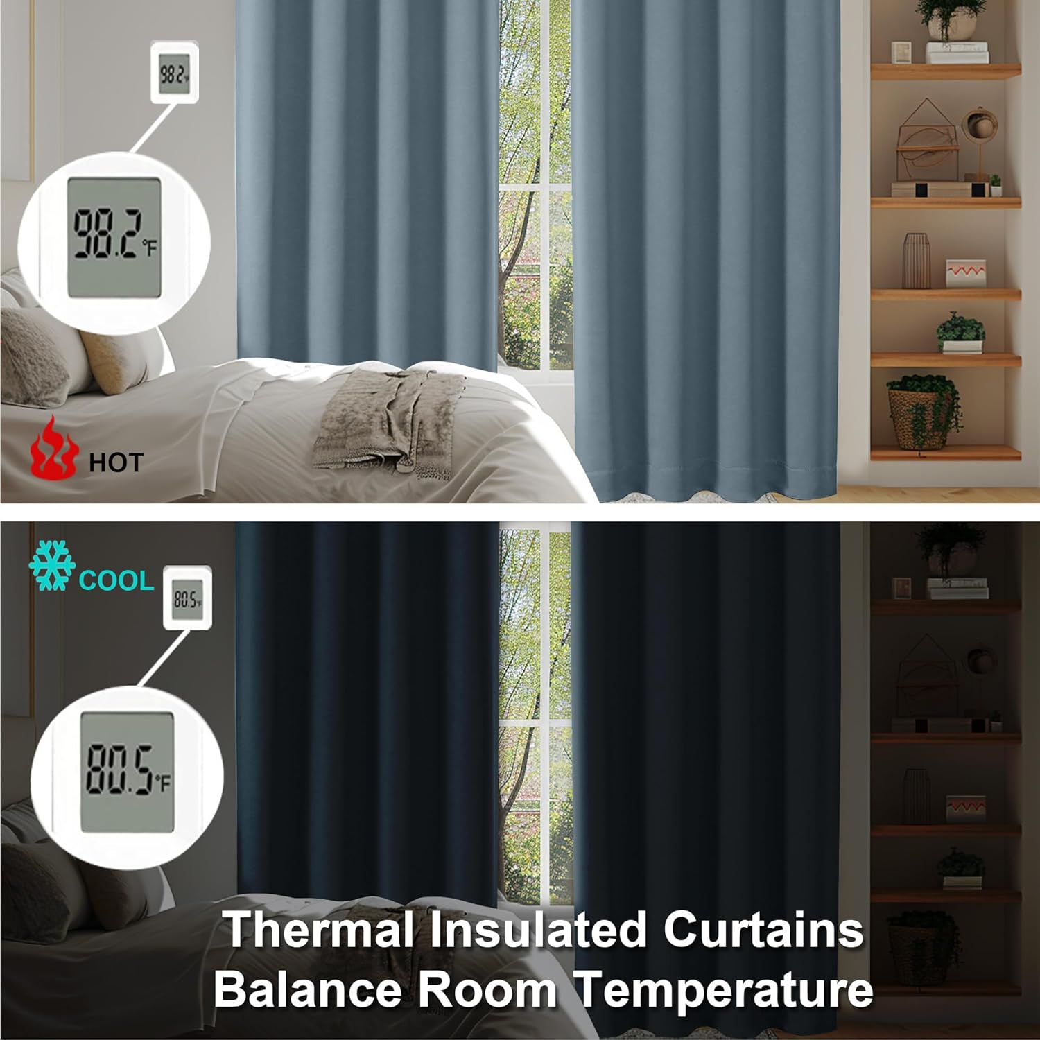 - Energy Saving: The triple-weave light-blocking fabric balances room temperature by blocking heat in summer and cold in winter. Protect your furniture, floors, and artworks from the damaging effects of sunlight, and let the grey curtains pay for themselves over time. They are perfect for living rooms, bedrooms, yards, patios, villas, parlors.