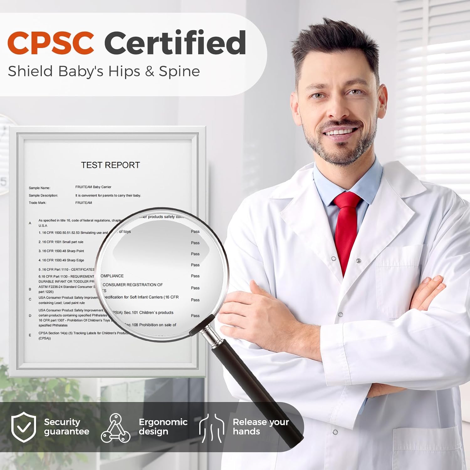 FRUITEAM Baby Carrier, Upgraded Adjustable Knob, 6-in-1 Baby Carrier Newborn to Toddler, Safety-Certified Baby Hip Seat Carrier, Perfect for Travelling Shopping Breastfeeding