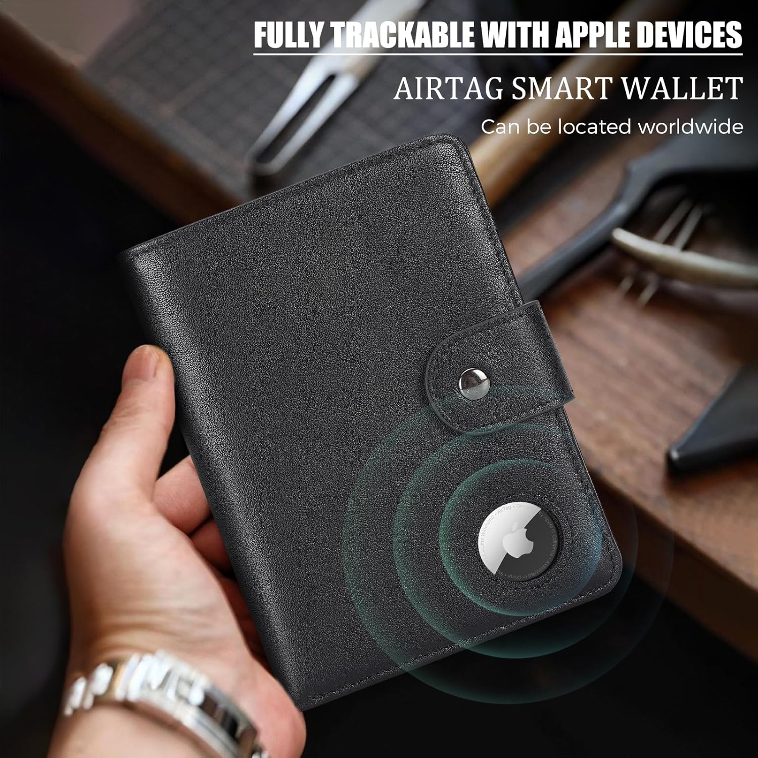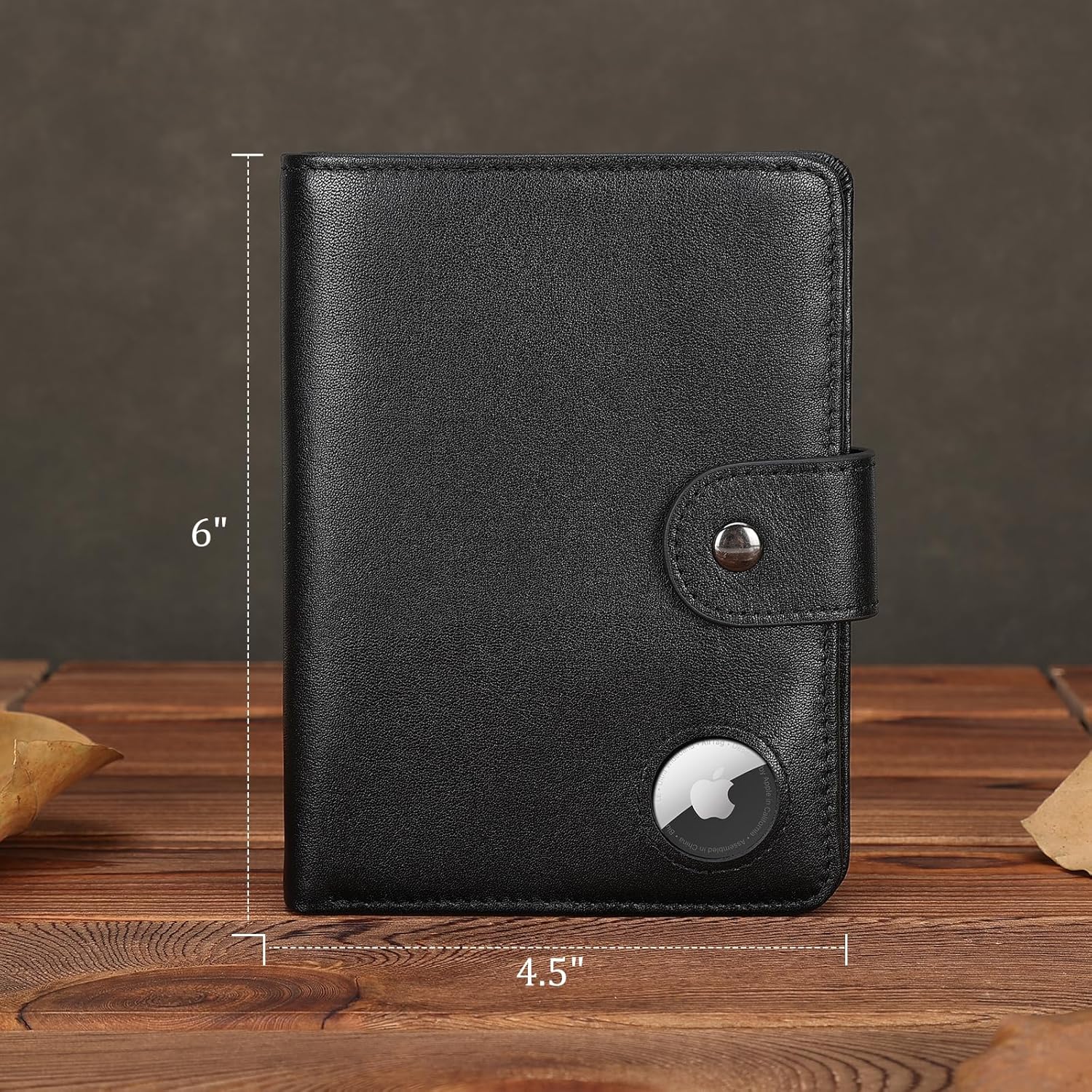 Polare Luxury RFID Blocking Leather Passport Holder Travel Wallet For Men and Women (Black with AirTag Slot(Snap Version))