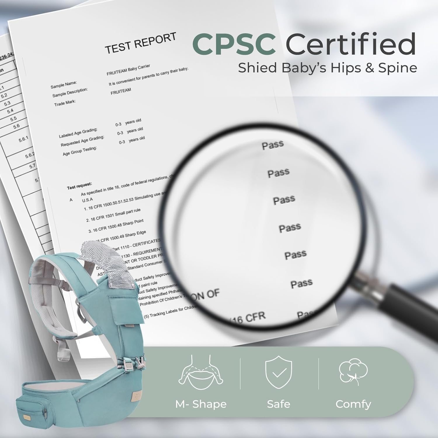 FRUITEAM 6-in-1 Baby Carrier with Waist Stool/Hip Seat, One Size Fits All -Adapt to Newborn, Baby Hip Carrier for Breastfeeding, Infant & Toddler, (Green)