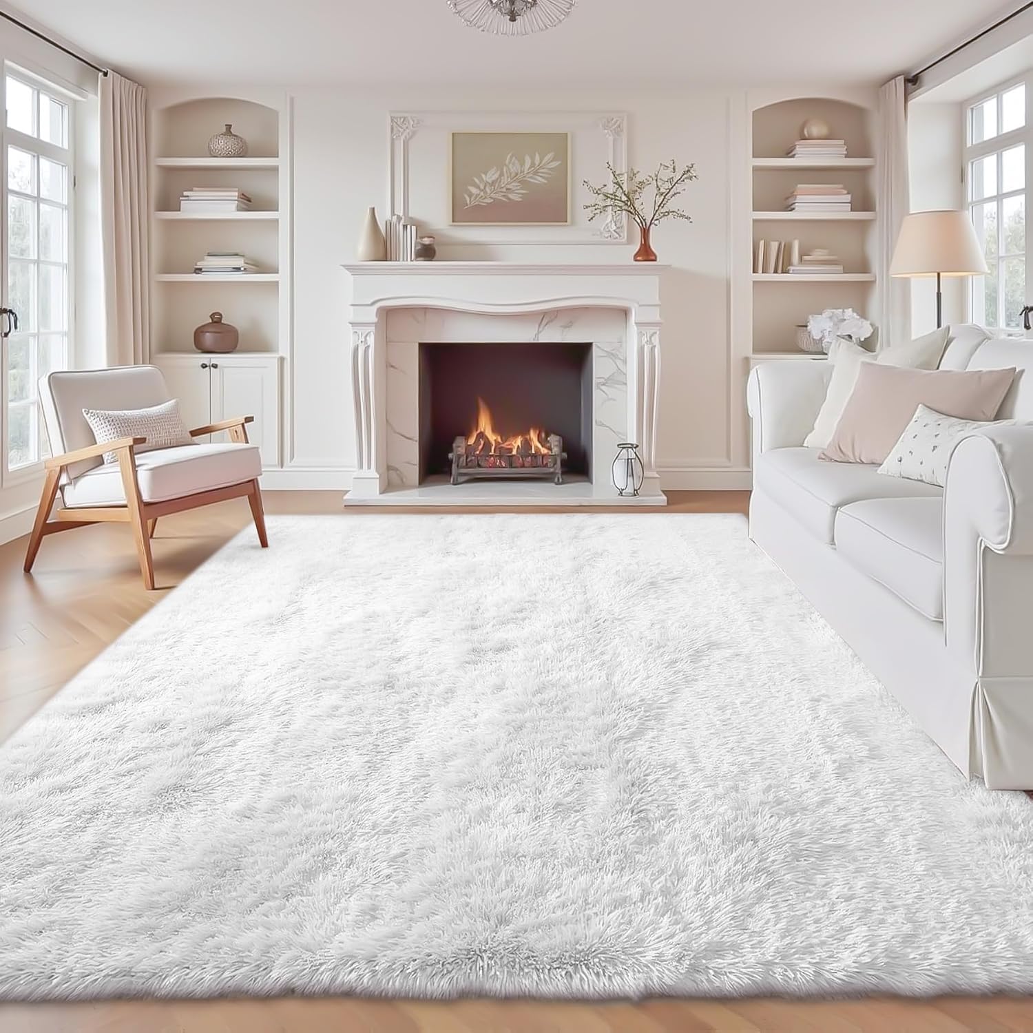 8x10 Area Rug for Living Room: Fluffy Shag Soft Washable Rugs Large Fuzzy Plush Indoor Carpet for Bedroom Nursery Playroom Kids Girls Boys Room (White, 8'x10')