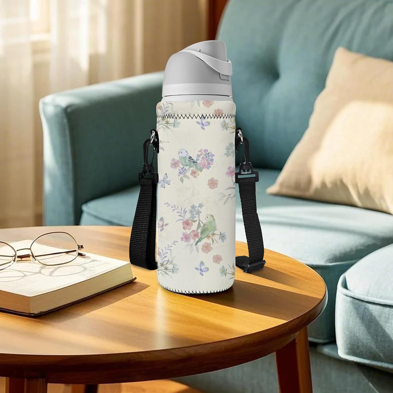 RICHEN Neoprene Water Bottle Carrier Bag with Adjustable Shoulder Strap,Insulated Water Bottle Cover for Stainless Steel/Glass/Plastic Bottles