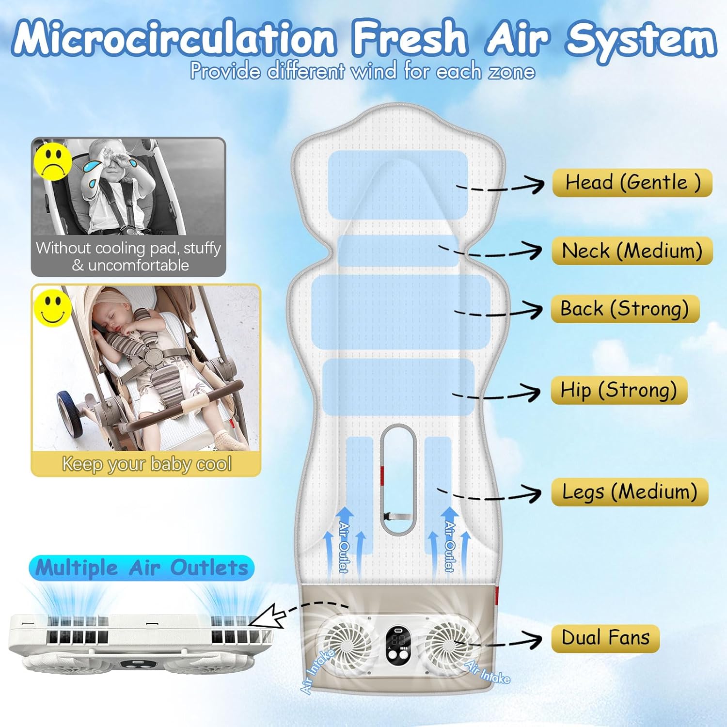 - π€©3 Seconds Cooling: The stroller cooling pad is equipped with 2 fans, ventilation holes are evenly distributed on the back, hip and leg, providing all-round air supply for faster cooling. πΏπͺπ§ππ£π π©πππ¨ π₯π§π€πππ¨π¨, π©ππ ππ§πππ©ππ€π£ πππ©π¬πππ£ πππ§ππ‘π€π¬ ππ£π ππππ§ππ ππ£π©ππ£π¨πππππ¨, π π¨π‘ππππ© π£π€ππ¨π πππ£ ππ ππππ§π ππ£ π π¦πͺπππ© ππ£π«ππ§π€π£π’ππ£π©. Innovative honeycomb design improves air circulation efficiency, reduces stuffiness and keeps dry and comfortable. Bidding farewell to the sticky and uncomfortable summer days.