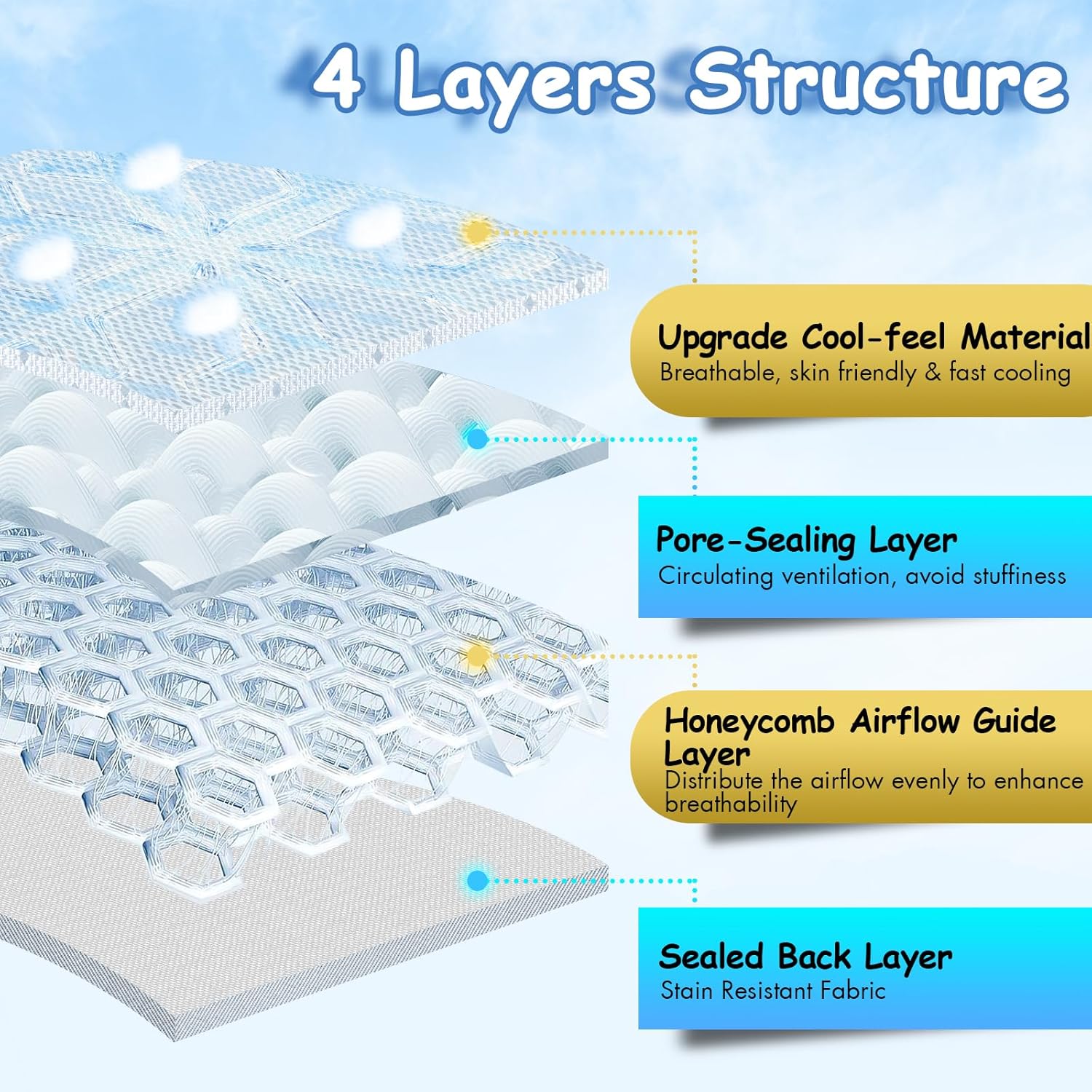 - πWide Application: The size of the cooling cushion is 34.64 "x 14.17", the upgraded cooling pad is compatible with most strollers, cribs and dining chairs. Heat absorbing and sweat wicking in summer, moisture-proof and cool proof in spring and autumn. Elastic hooks and adjustable buckles can fix it to prevent sliding. Easy to install and foldable for storage.