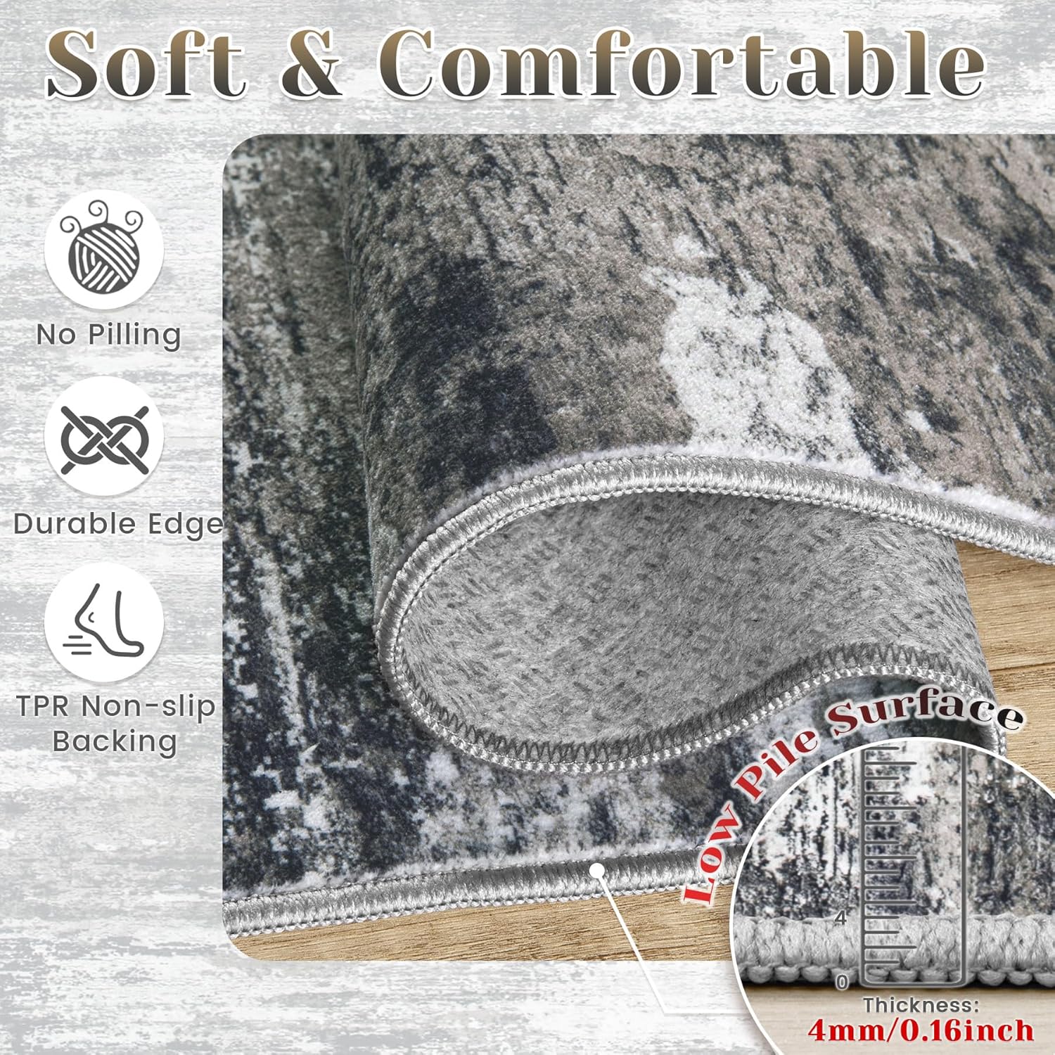 Washable Rug 6x9 Area Rugs for Living Room: Neutral Soft Rug Abstract Non Slip Low Pile Modern Carpet for Bedroom Kitchen Nursery Office Dining Room Indoor (Black, 6'x9')