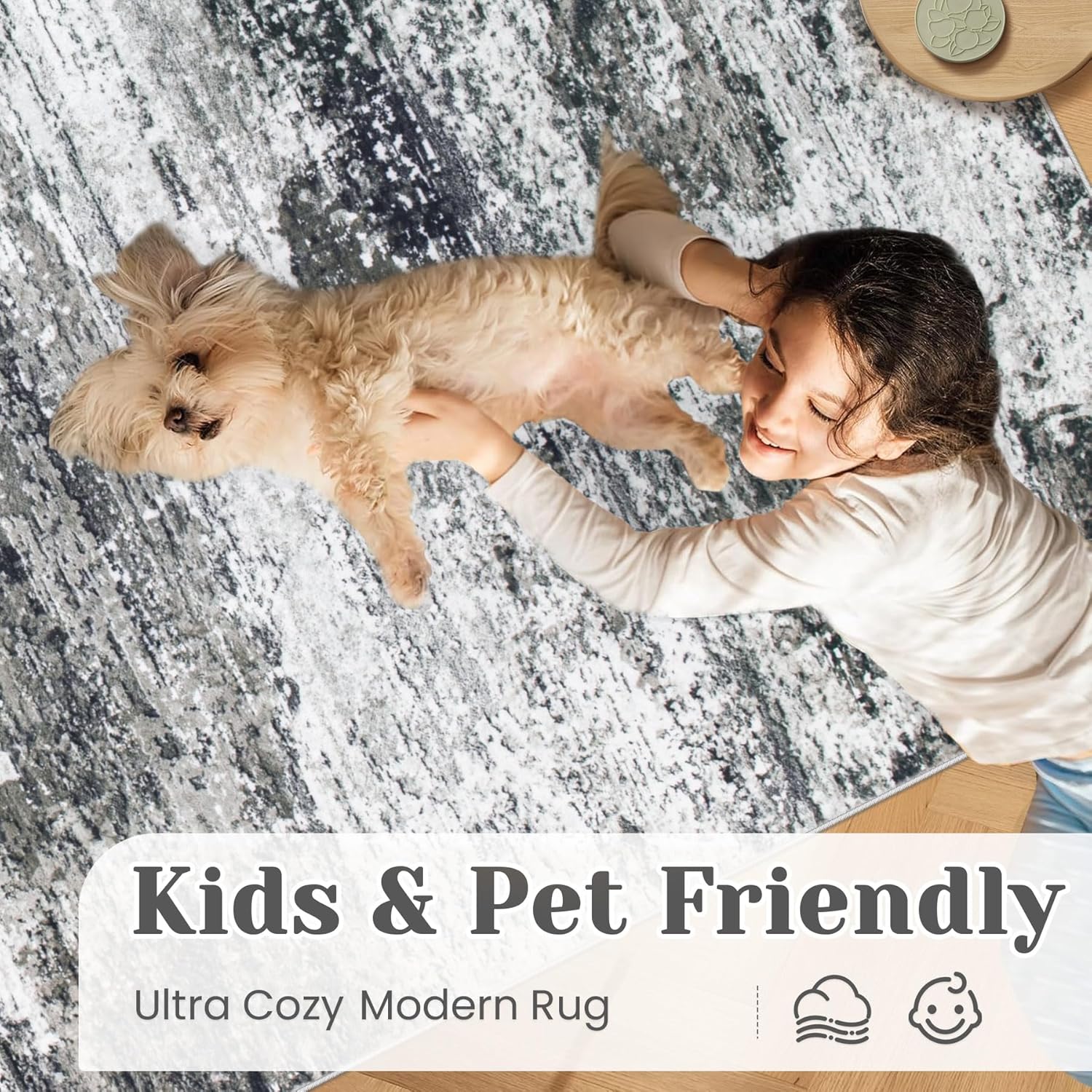 - 【Kids & Pet Friendly】Made from high-quality, fade-resistant fabric, this 5x7 rug is safe for children to touch and play on. Its 0.16-inch low-pile design resists shedding, while pet hair and dander don’t cling easily. Stains and dirt wipe away effortlessly, making it perfect for relaxing with your little ones and pets.