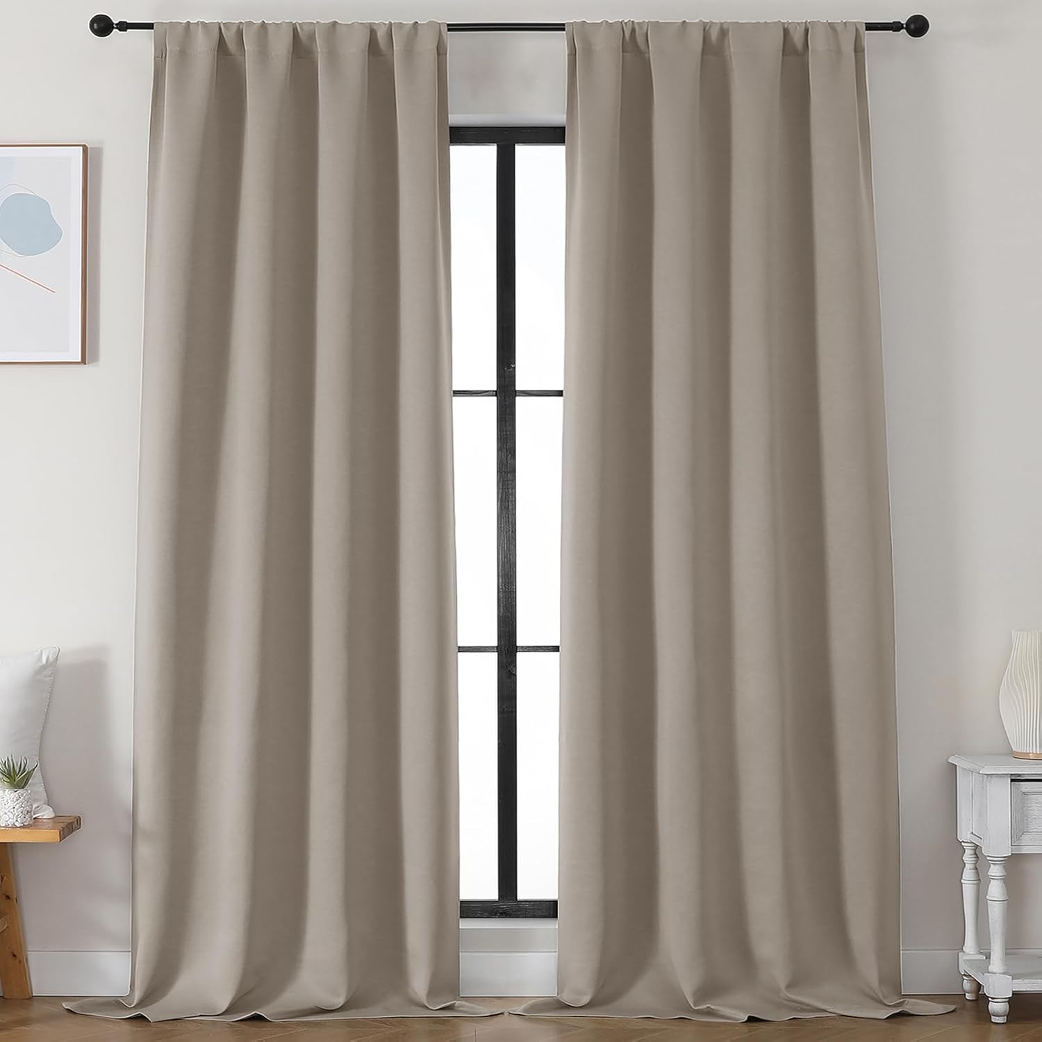 - Light Blocking: Our blackout curtains block 98% to 85% of light and UV, with darker colors up to 98% and medium shades at 85%. Even white curtains reduce light by 60%. Perfect for any room or lighting preference. Choose based on your room's direction and personal style. Ideal for bedroom privacy or living room ambiance. Our curtains blackout blend function with style, fitting seamlessly into your lifestyle.