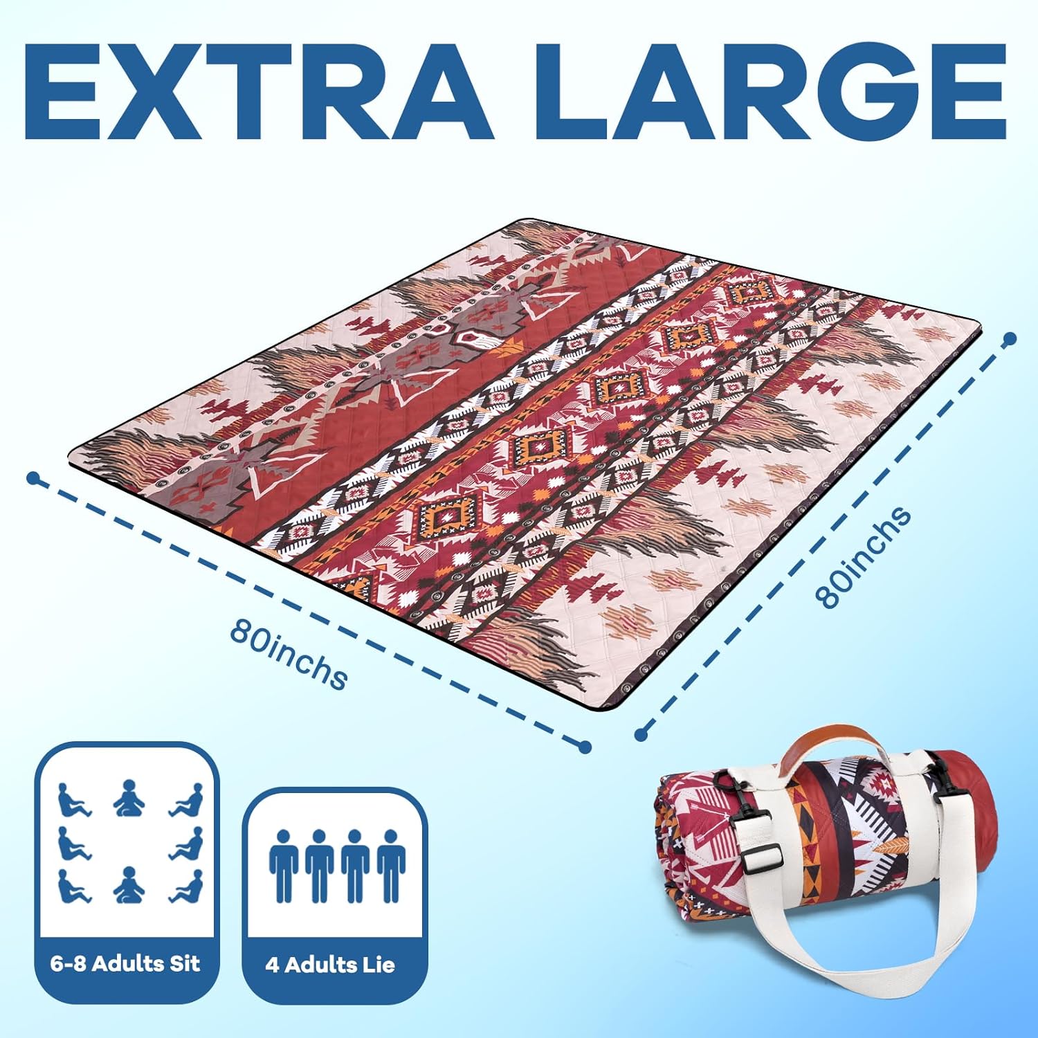 - 【Oversized for 4-8 adults】The size of this picnic blanket is 80"x80", making picnic blankets perfect for family picnic blankets or outdoor blankets. This large blanket comfortably accommodates 6-8 people or let 4 lie down, making it a good choice for camping blanket