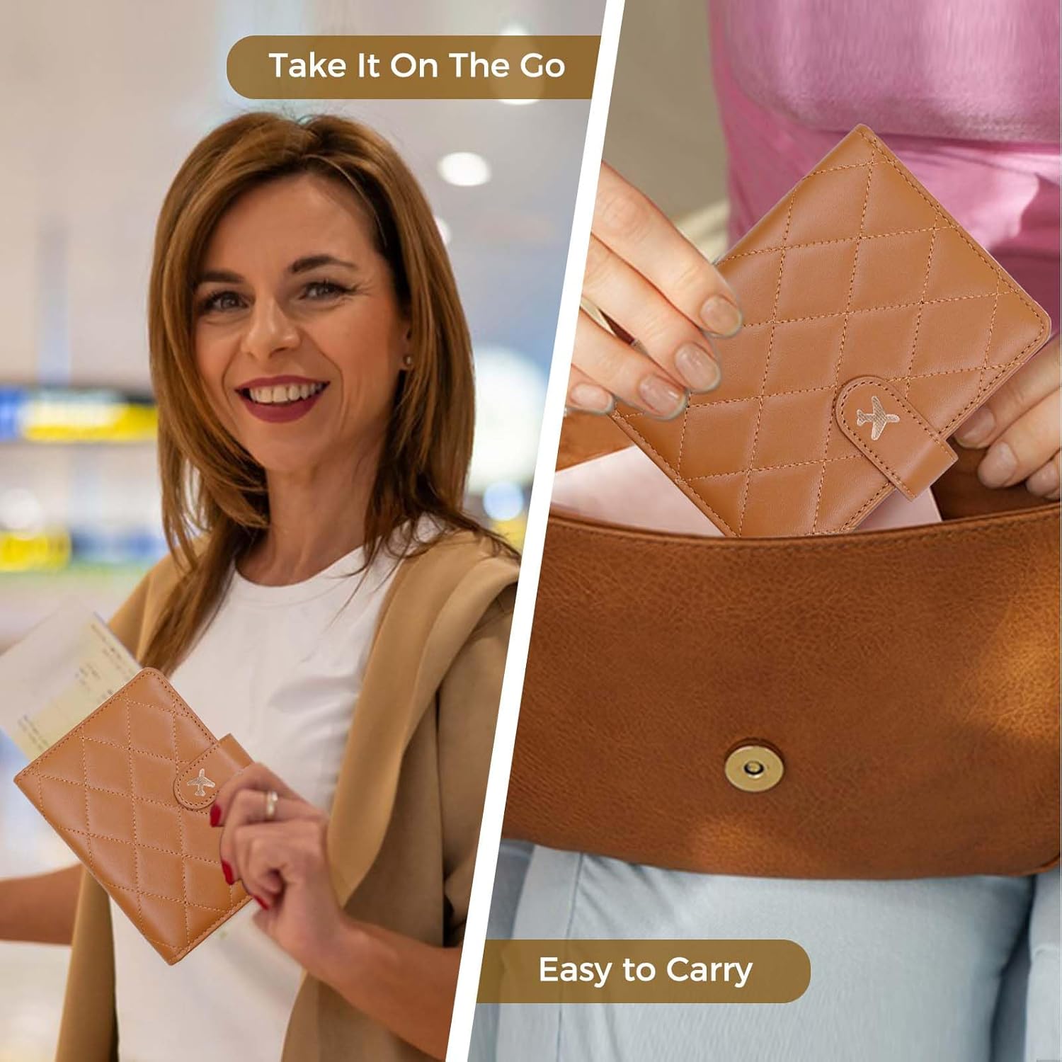 Melsbrinna Rfid Passport Holder for Travel women/Men, Cute Passport Wallet Rfid Blocking Card Slots, Rfid Passport Cover/CaseTravel Wallet, Passport Book Holder (1, LG BROWN)
