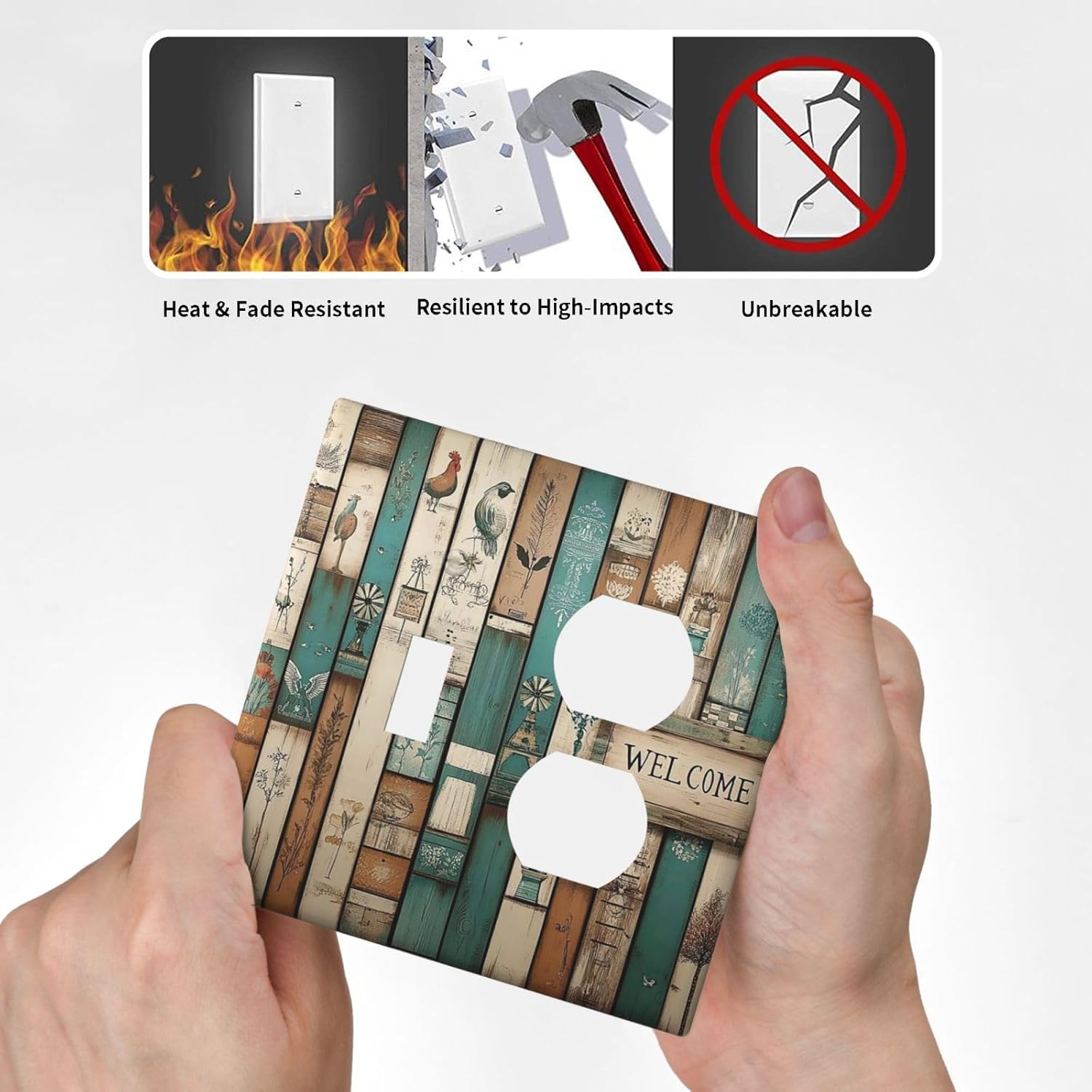Wallplates Vintage Wood Brown Turquoise Splicing 1 Toggle 1 Duplex Switch Plate Electrical Gfci Faceplate Decorative Light Switch Covers For Farmhouse Cabin Decor