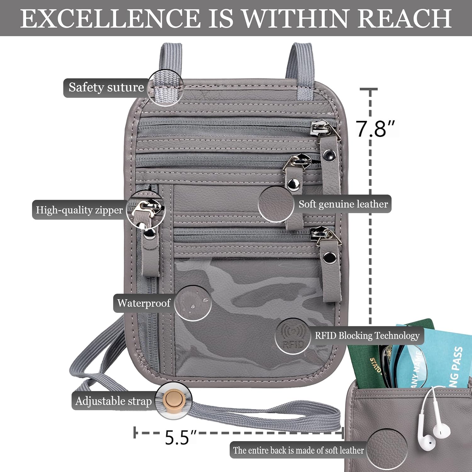 - Spacious And Organized – Size 7.8*5.5in, A Stylish, Easy-To-Use Design, That’S Comfortable And Lightweight. With Zippered Pockets, A Velcro Patch, And A Clear Id Window. Fits Passports & Large Smartphones, Cash, And Tickets.