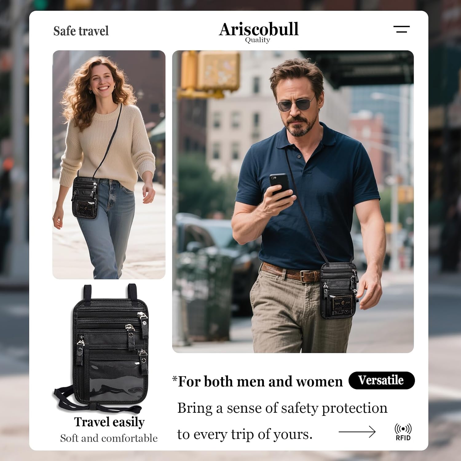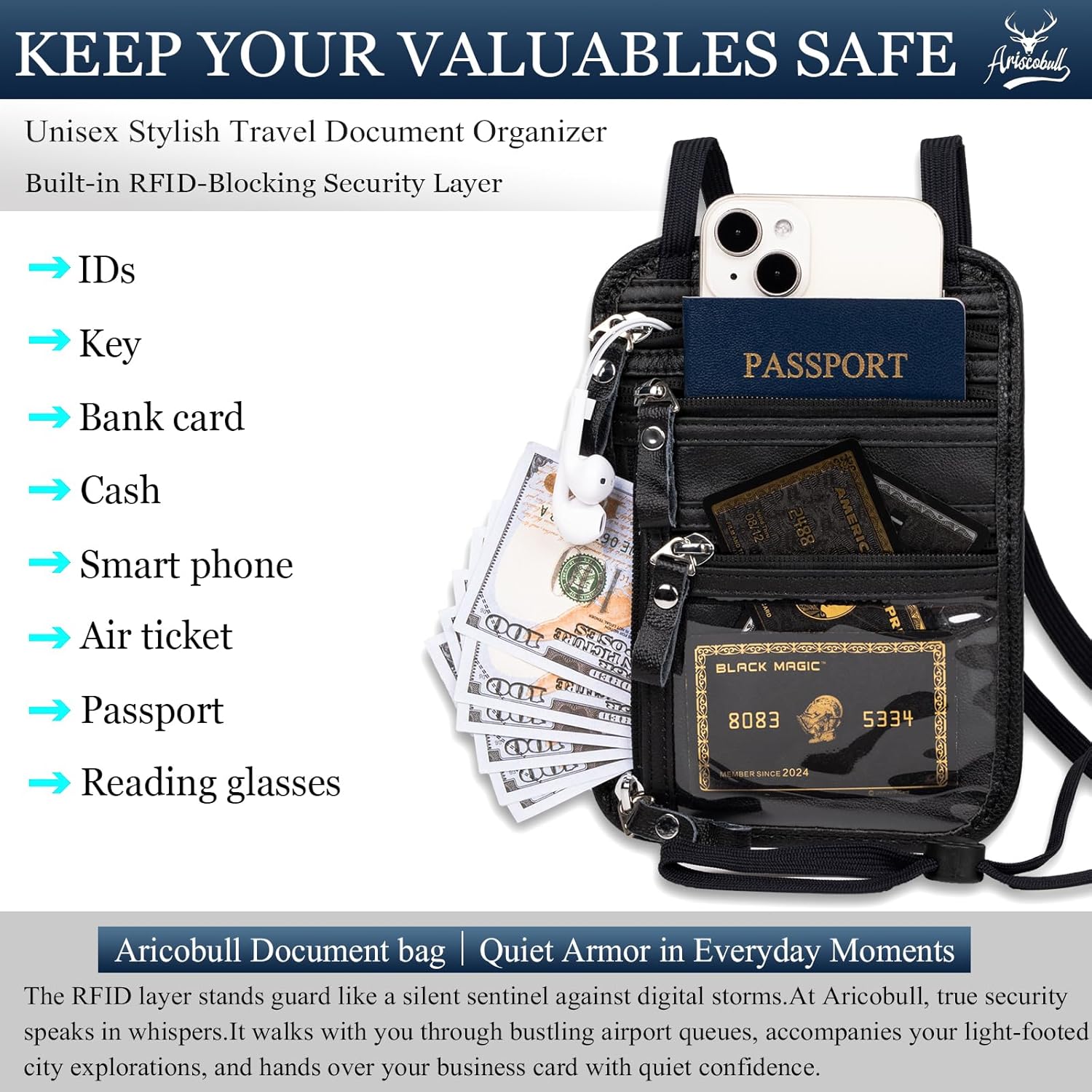 - Discreet Anti-Theft Design – Our Ariscobull Neck Wallet Makes It Super Easy To Add Or Remove Items, Keep Valuables Hidden Under Clothing, Perfect For Travel And Crowded Areas.