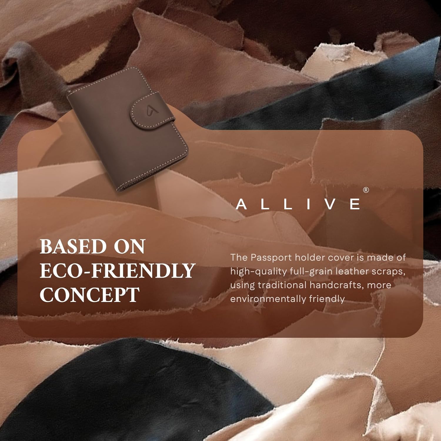 ALLIVE Passport Holder for Travel, Genuine Leather Passport Holder with AirTag Hidden, Rfid Passport Cover Travel Wallet for Airport Essentials, Travel Must Haves Gifts (Coffee Brown)