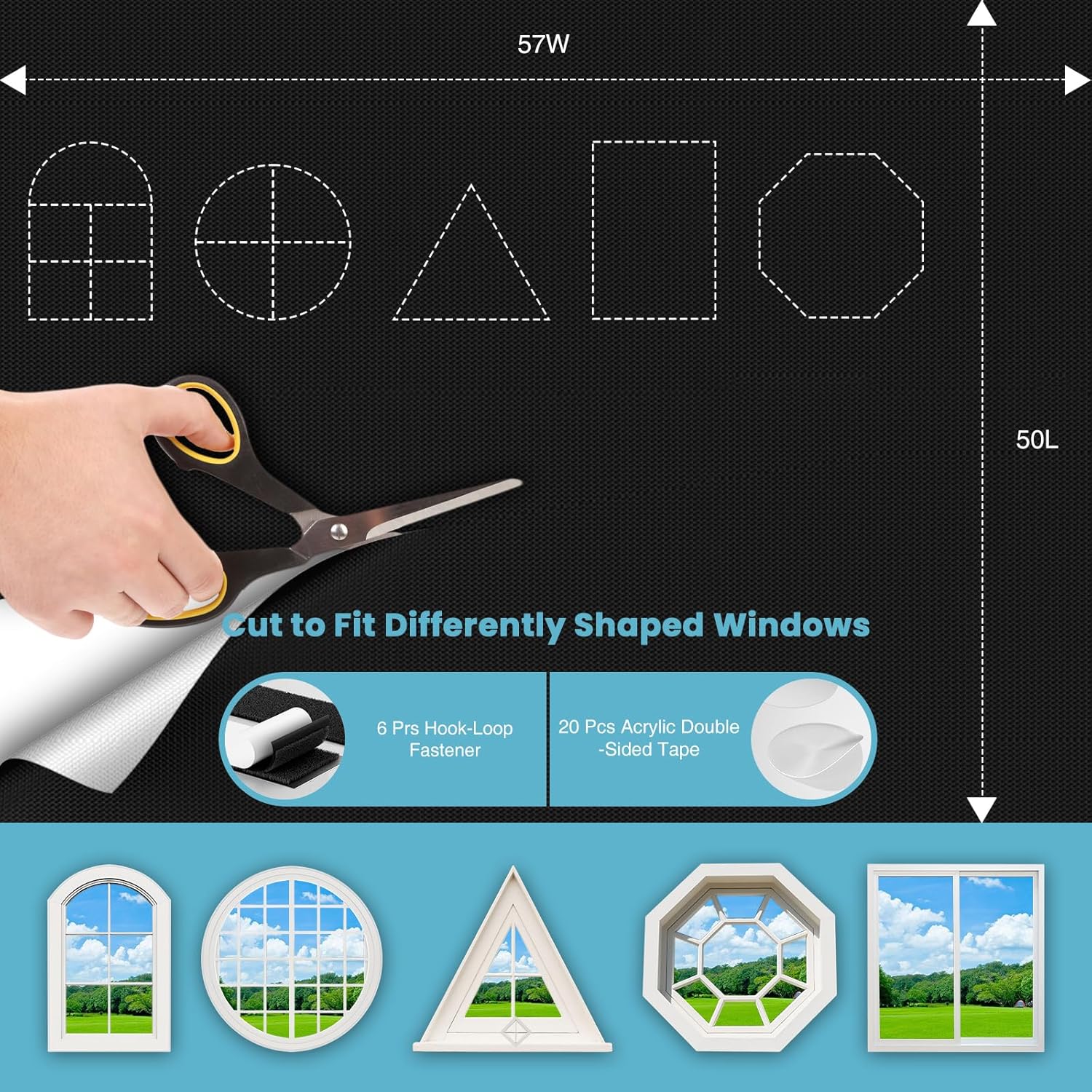 - 【DIY Shape】: Our temporary blackout shades are highly versatile and can be customized to fit any indoor window shape or size, including common types such as bay windows, skylights, door windows and so on. Remember to cut it a little larger than the window for better blackout effect.