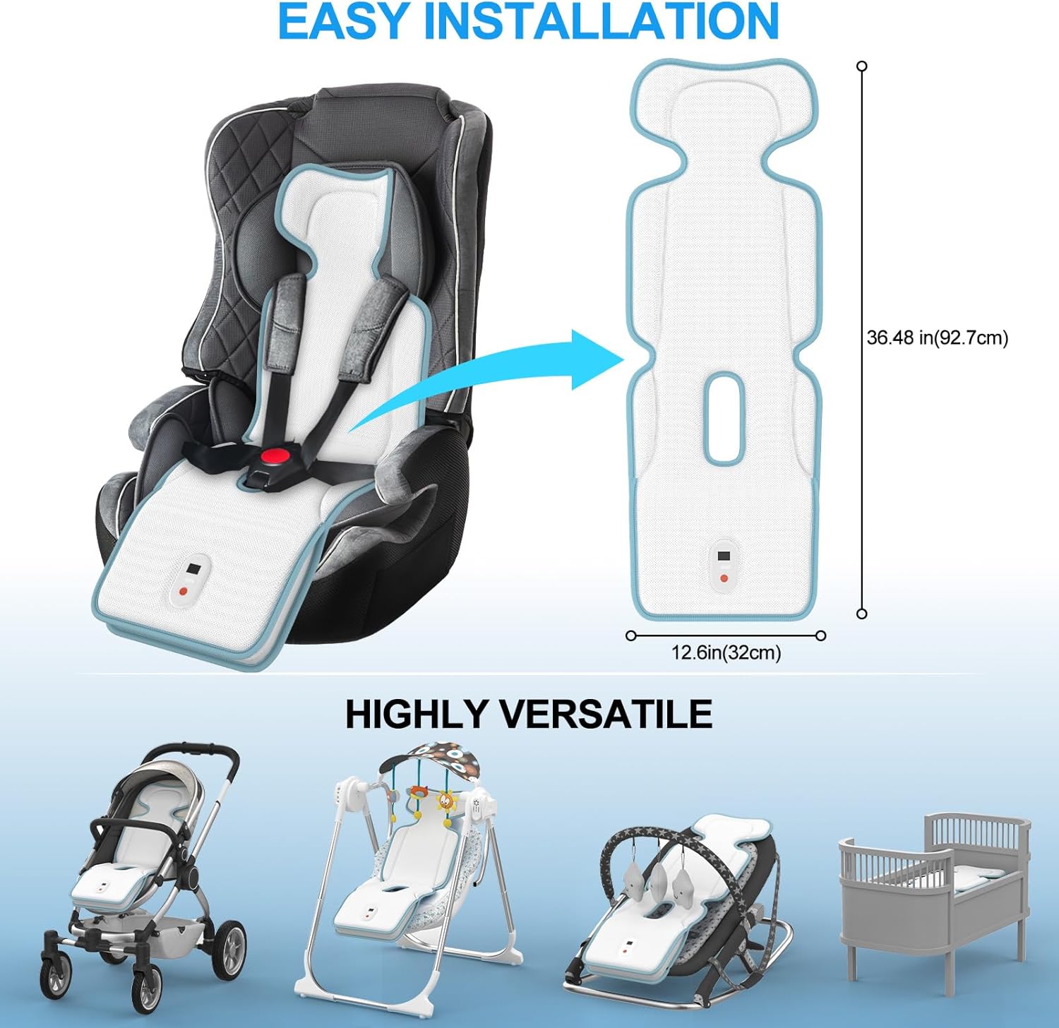 - 【Versatile for Multiple Baby Gear】 More than just a car seat liner—our cooling cushion features adjustable straps that easily secure to most baby gear, including strollers, bassinets, high chairs, baby swings, and rockers. One versatile pad for countless comfort solutions